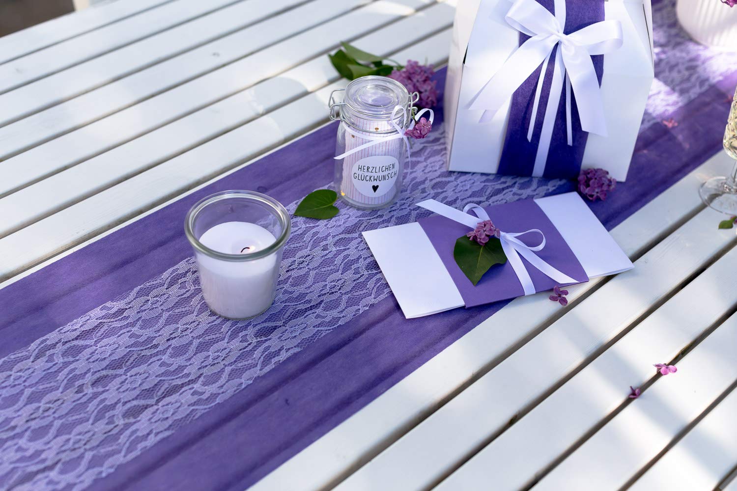• Kombination: Auf dunklen Holztischen oder Tischdecken sowie auf kontrastfarbigem Deko-Vlies, Juteband oder Leinenstoff hebt sich das Spitzenband hervor und kommt so besonders gut zur Geltung