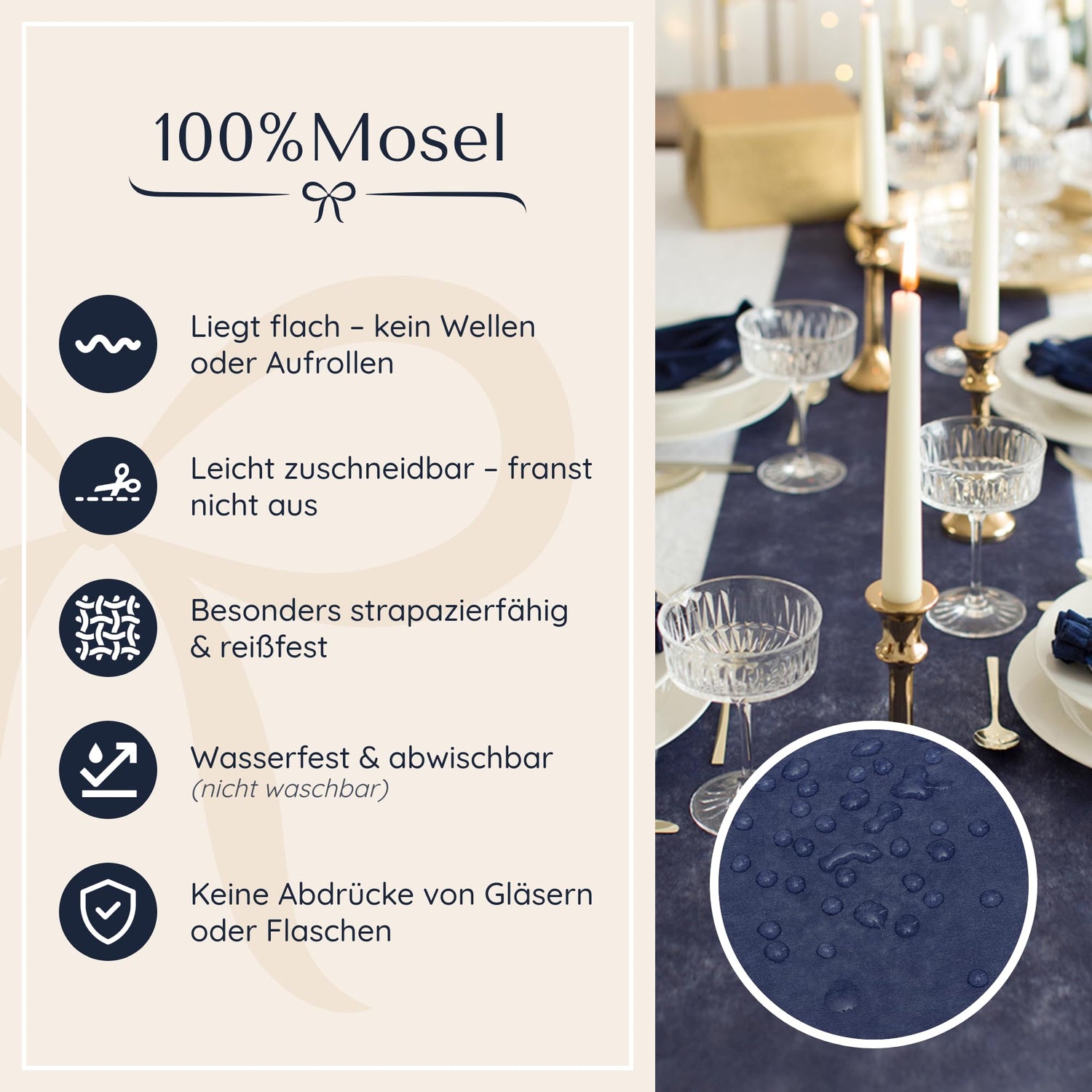 100%Mosel Vlies Tischläufer, in Nachtblau (30 cm x 25 m), dekoratives Tischband, edle Tischdeko für Geburtstage & Hochzeiten, Bunte Dekoration zu besonderen Anlässen
