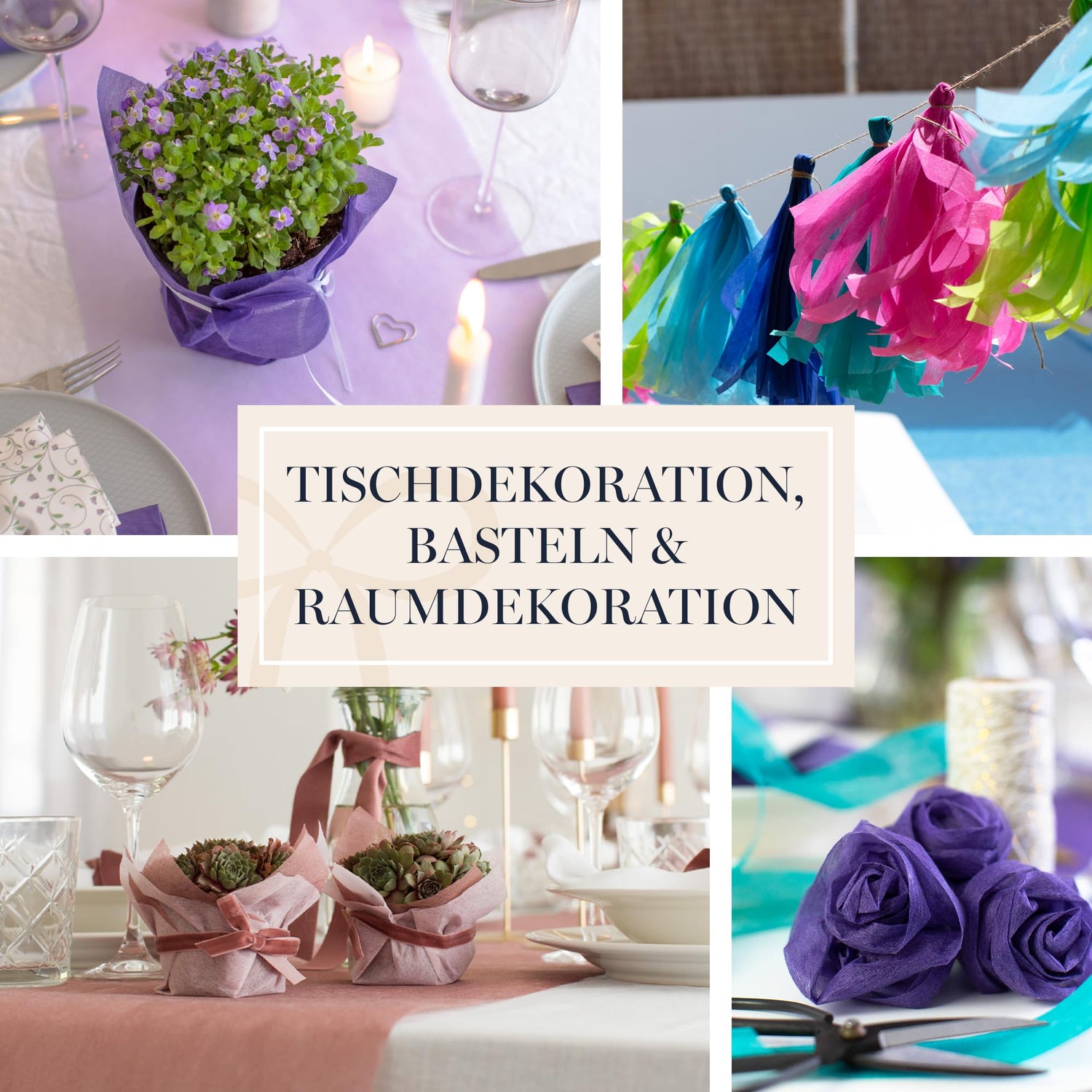 • Kombination: Die bunten Vlies Tischbänder lassen sich je nach verwendetem Untergrund, Blumenschmuck und Streudeko festlich elegant, verspielt oder locker dekorieren - Inspiration finden Sie in unseren Fotobeispielen