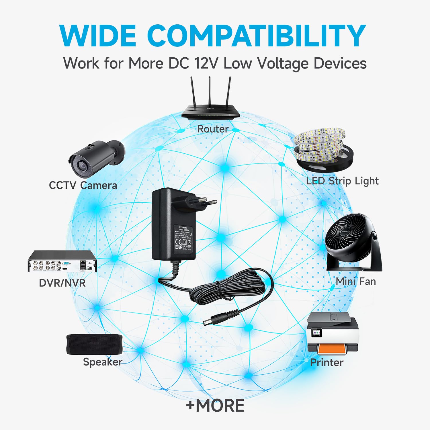 • [Kompatibilität und breite Anwendung]---Kompatibel mit den meisten Elektronikgeräten, die einen 12-V-Ausgang unter 1A/1000mA (0,1A/100mA-1A/1000mA) Ausgangslast benötigen, wie z. B. CCTV-Sicherheitskameras, LED-Streifenlichter, Router, Computer-PC-Gehäuselüfter , IR-Strahler, 12-V-Motor, Arduino und andere kleine Stromversorgungsgeräte. Der Adapter passt den Ausgangsstrom (max. 1 A) entsprechend an verschiedene Geräte an und ist ein perfekter Ersatz für alle 12-Volt-Netzteile mit 0 bis 1 A.