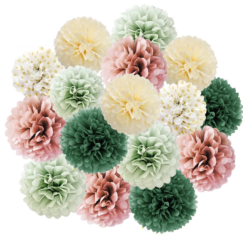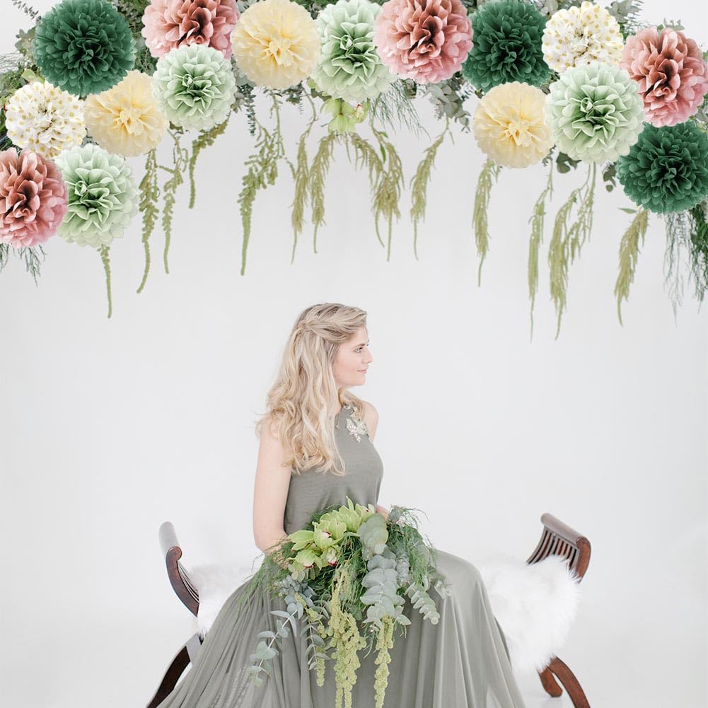 16 Stück Pompons Deko Salbeigrün Rosa Olivgrün Beige Seidenpapier Pompoms Grün Rosa Sage Green Party Deko für Brautparty Babyparty Geburtstagsdeko Grün Rosa Rustikale Hochzeit Salbeigrün