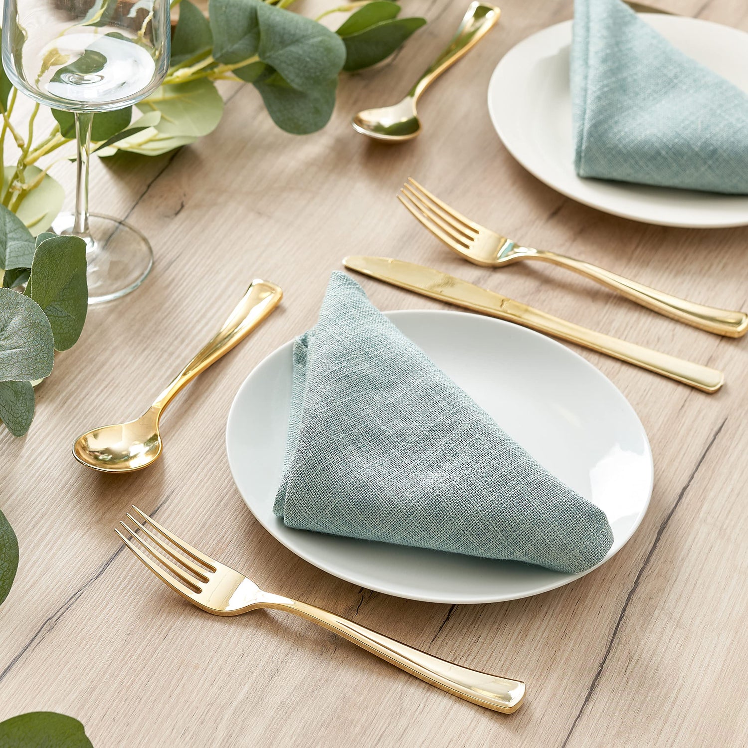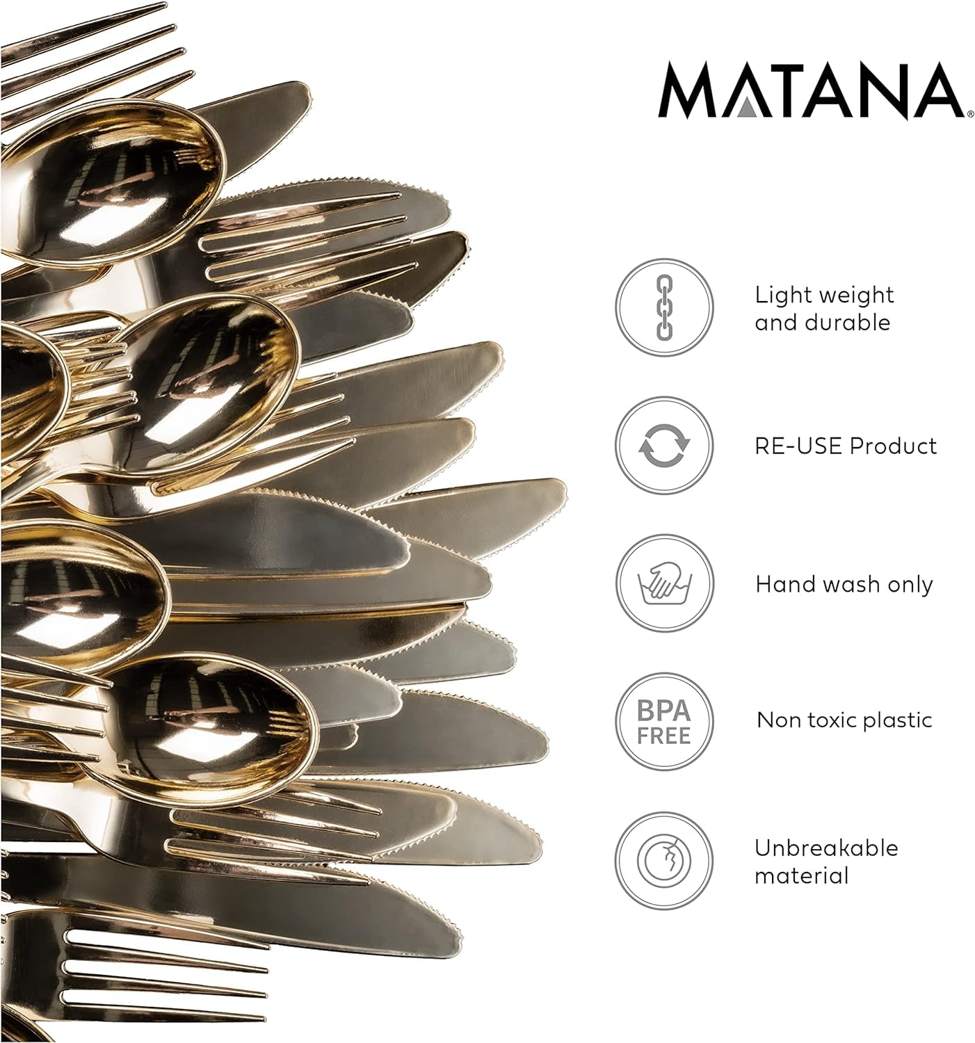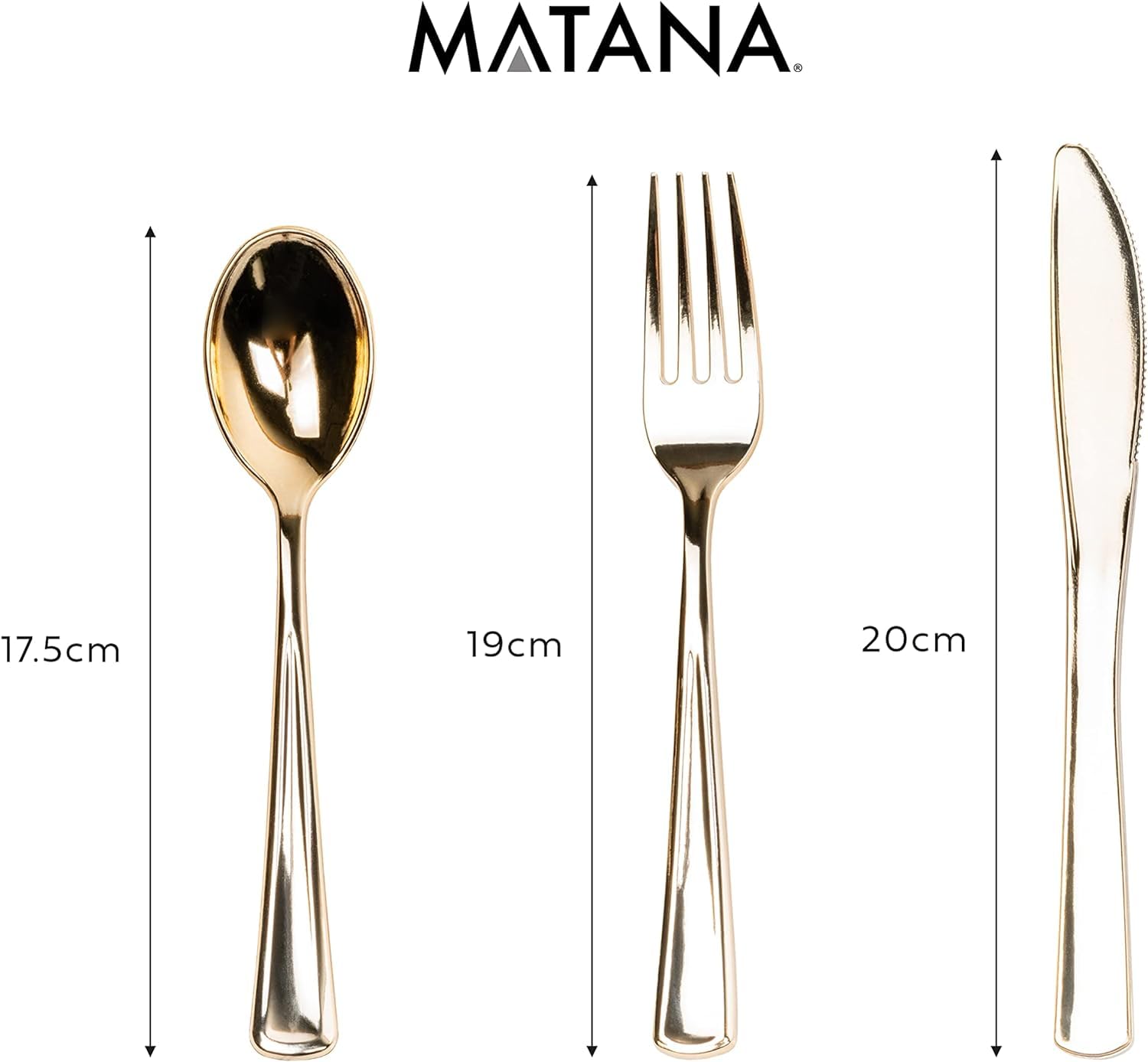 • Verleihen Sie jedem Anlass Eleganz – verschönern Sie Ihre Veranstaltungen mit unserem robusten Goldbesteck aus goldfarbenem Kunststoff, das entworfen wurde, um Gäste mit seinem echt aussehenden Gold-Finish zu beeindrucken. Perfekt für Hochzeiten, Partys und Familienfeiern, wird Ihre Gäste sicher begeistern