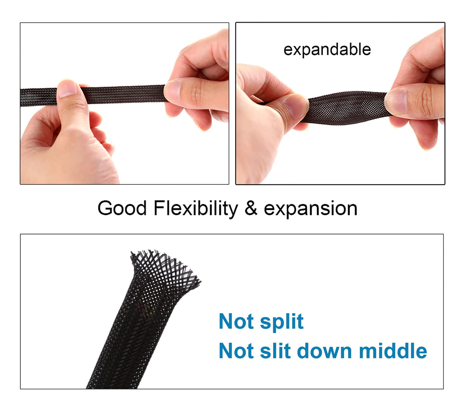 19mm-7.5m PET erweiterbar geflochten kabelschlauch kabelstrumpf kabelschutz kabelmantel-schwarz-Alex