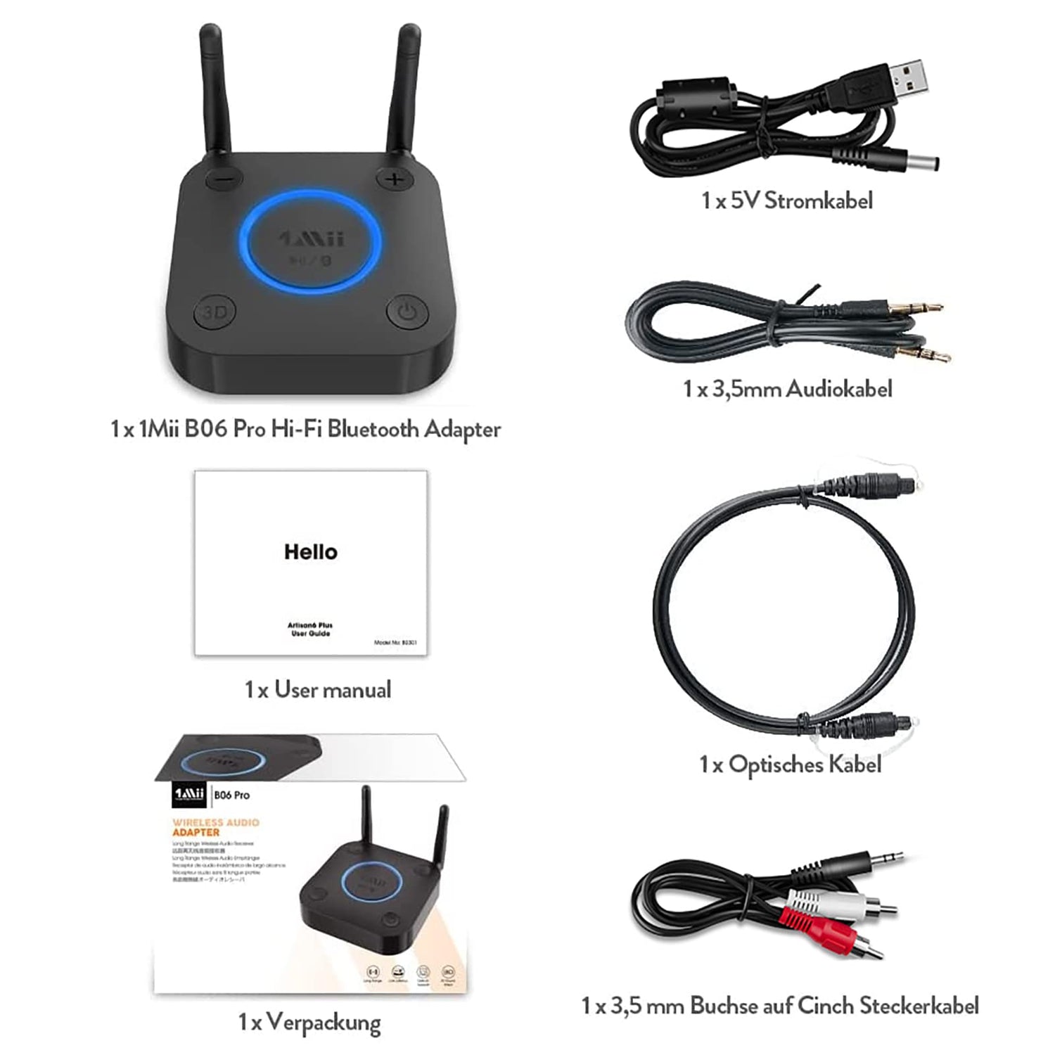 • 【APTX LL & HD & 3D AUDIO SOUND EFFECT】Der 1Mii B06 Pro Bluetooth Empfänger verfügt über einen QCC3031 Bluetooth 5.1-Chip, um ein High Fidelity Bluetooth-Audiosignal für das Musikstreaming an Lautsprecher oder Heimstereosysteme zu gewährleisten, die nicht über diese Funktion verfügen. Dieser Bluetooth-Adapter unterstützt auch aptX, aptX HD und aptX Low Latency (aptX-LL). Und das 3D-Audio kann durch Drücken der „3D“-Taste am Bluetooth-Audioempfänger ein- oder ausgeschaltet werden.