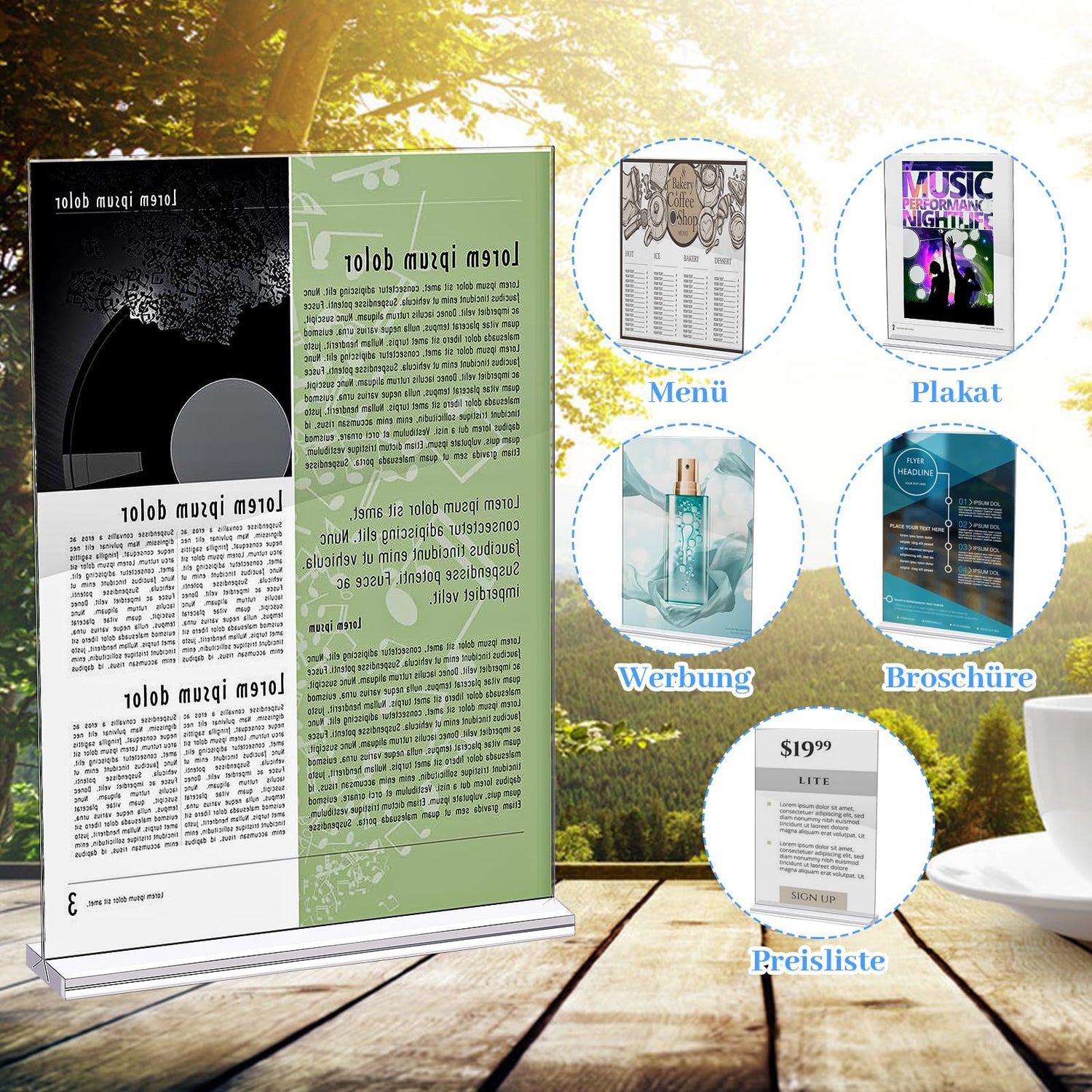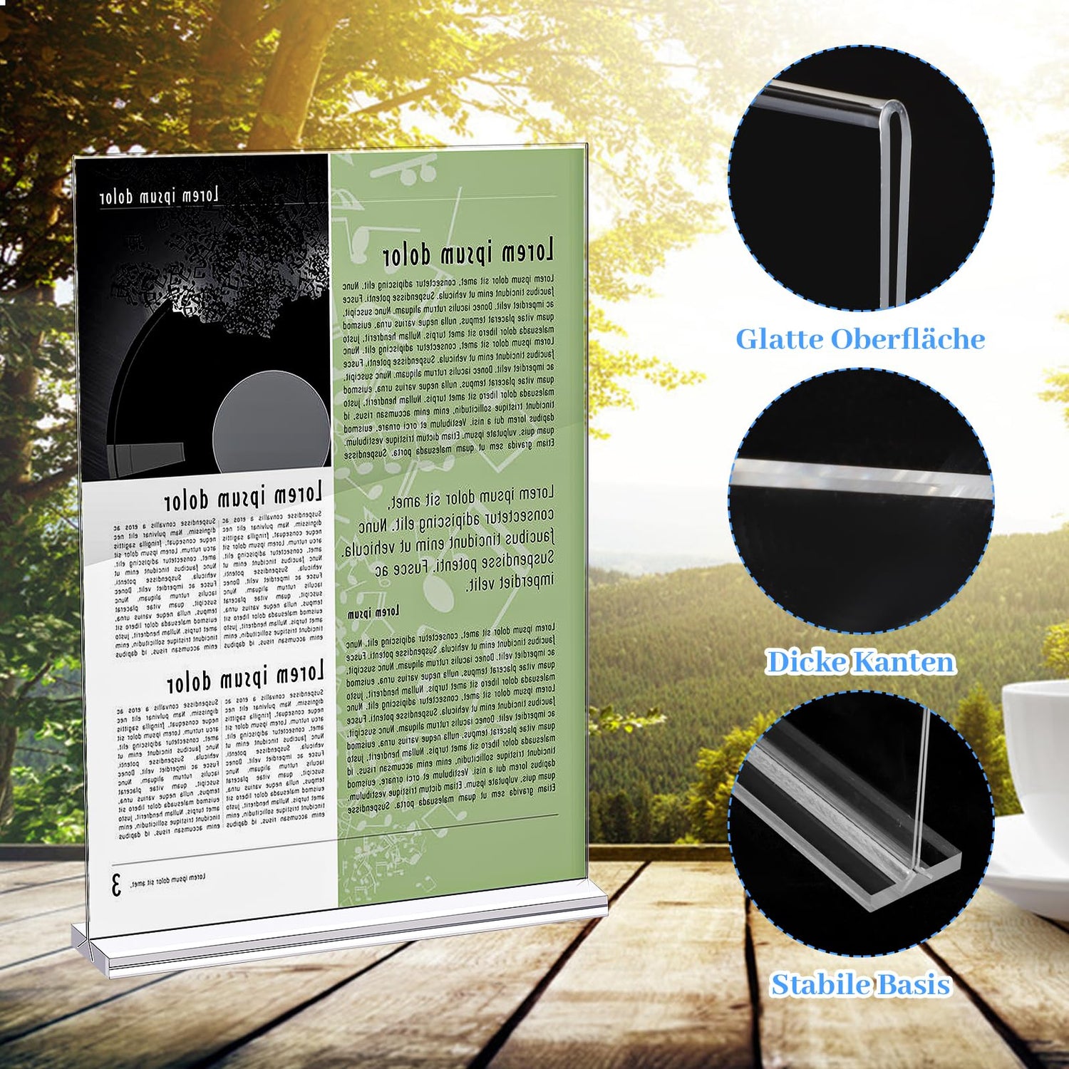 • TRANSPARENT - Preisschilder Aufsteller ist komplett transparent und kann beidseitig dargestellt werden. Sie können schnell und einfach Menükarten, Prospekte, Karten, Akten und Werbebroschüren zu wechseln.