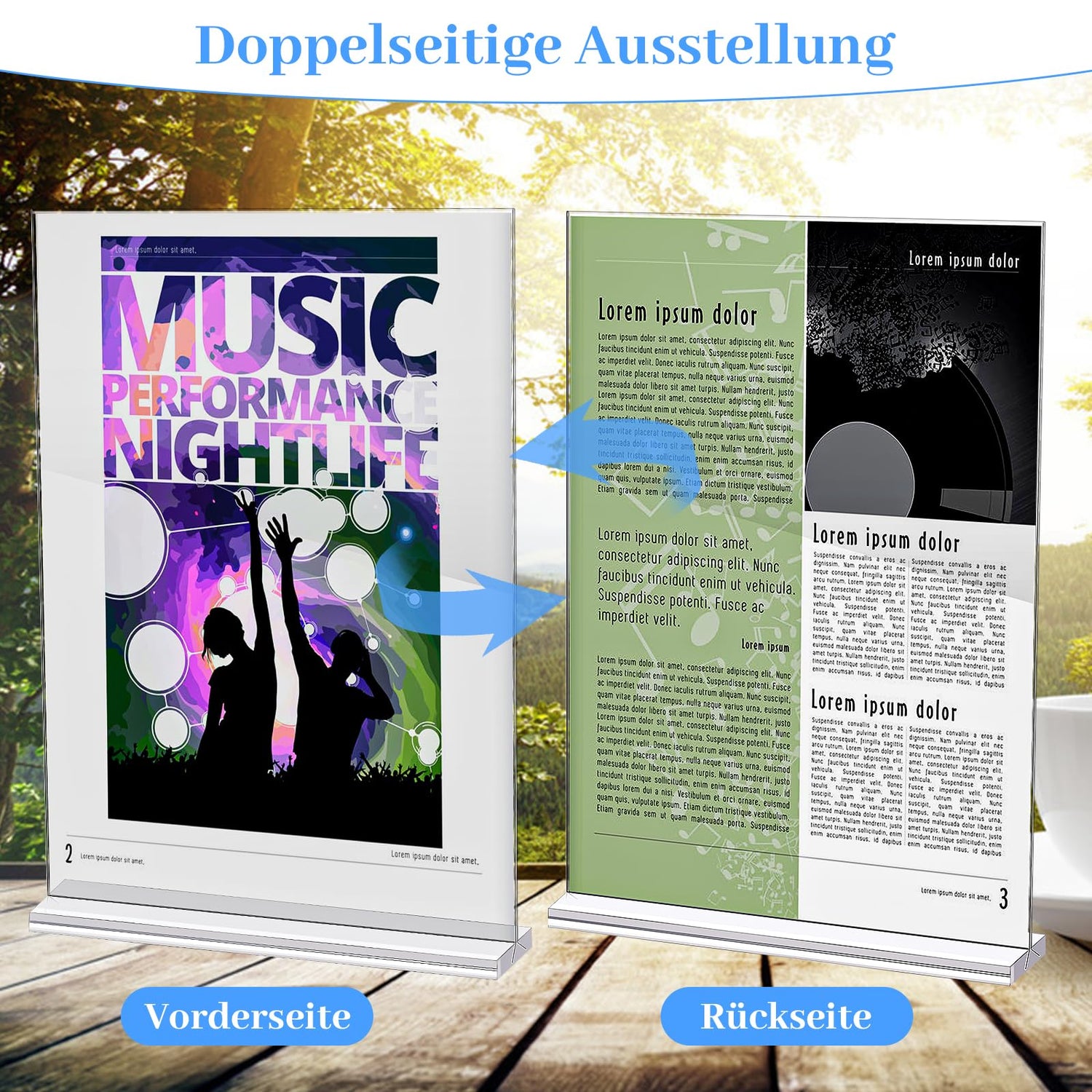 • LANGLEBIG - T Form Aufsteller A4 besteht aus Acrylmaterial, das stabil und langlebig, kratzfest, UV-beständig und nicht leicht gebrochen ist. Sie können die Oberfläche mit einem feuchten Tuch abwischen.