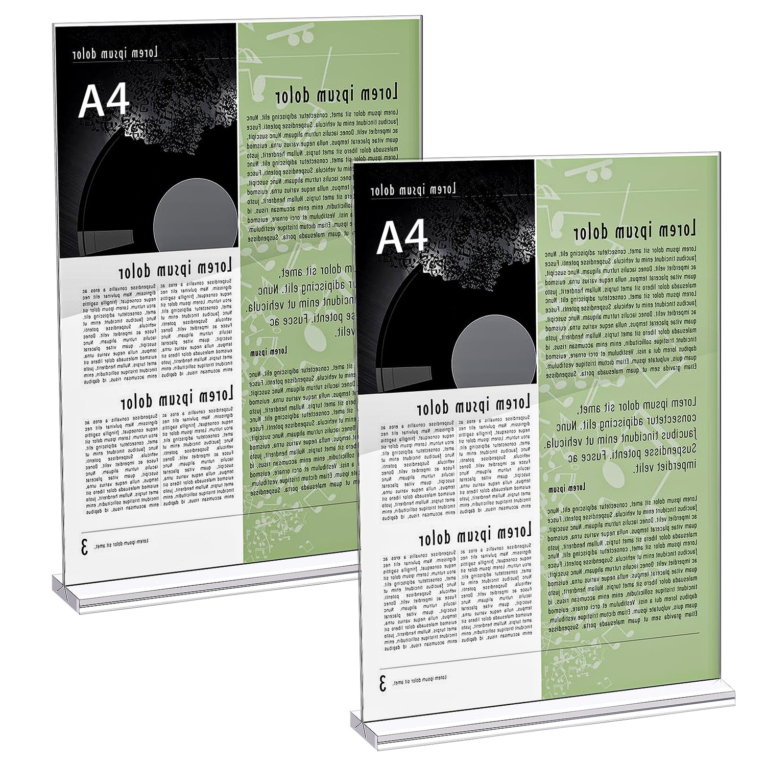 2 Stück Tischaufsteller A4, Preisschilder Aufsteller Tischständer Acryl T-Ständer für Prospekte Menükarte Werbung Fotorahmen (21 x 29,7cm)