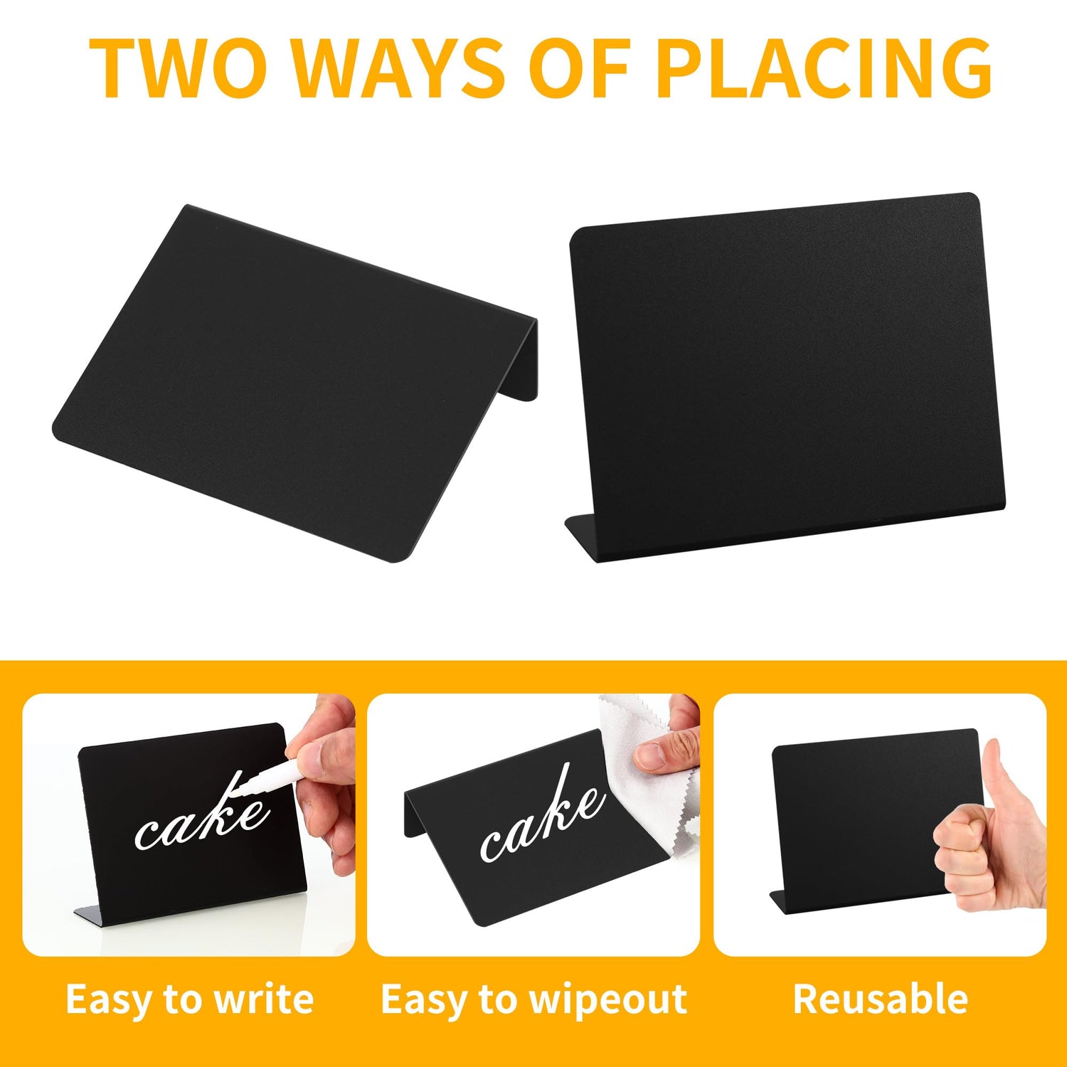 • L-förmiges Design:Kleine tafeln zum beschriften nimmt ein L-förmiges Design an, das wenig Platz auf dem Schreibtisch einnimmt und sich leicht auf einem Tisch, einer Arbeitsplatte oder einem Buffet-Präsentationsständer platzieren lässt,Nach Gebrauch kann es leicht gestapelt werden, um Platz zu sparen