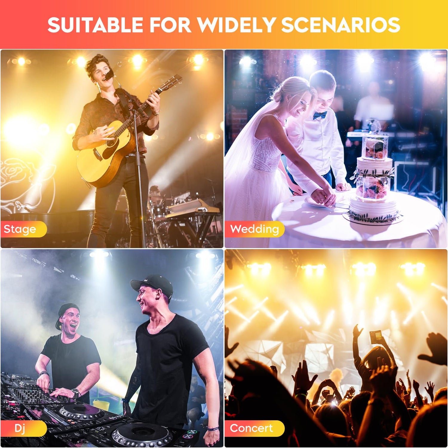 • 【4 Steuermodi】COB-Bühnenscheinwerfer verfügen über 4 Steuermodi: Selbstlauf, Tonsteuerung, Master-Slave, DMX, Sie können die Lichter auf Ihre bevorzugte Weise steuern, um verschiedene Effekte und Atmosphären zu schaffen, um die Beleuchtungsanforderungen verschiedener Szenen zu erfüllen.