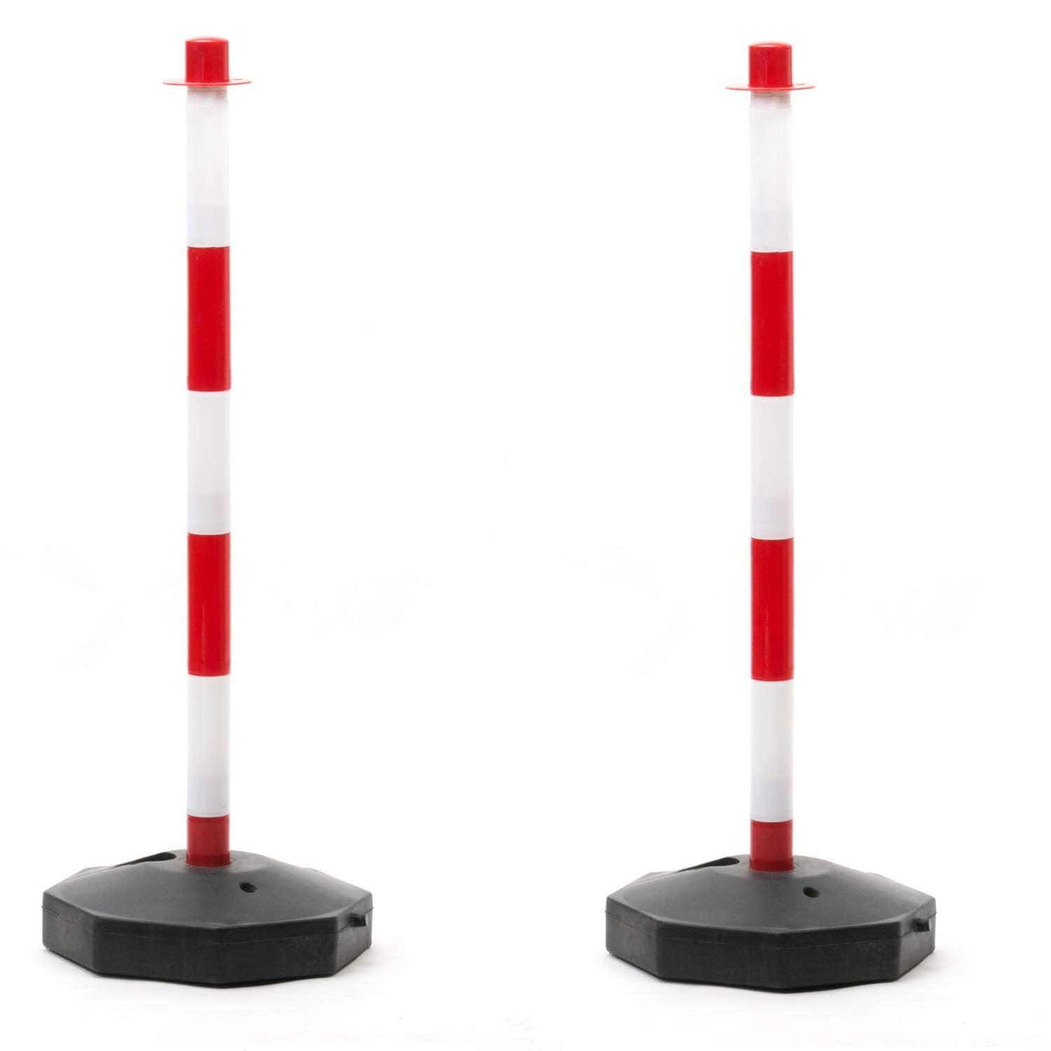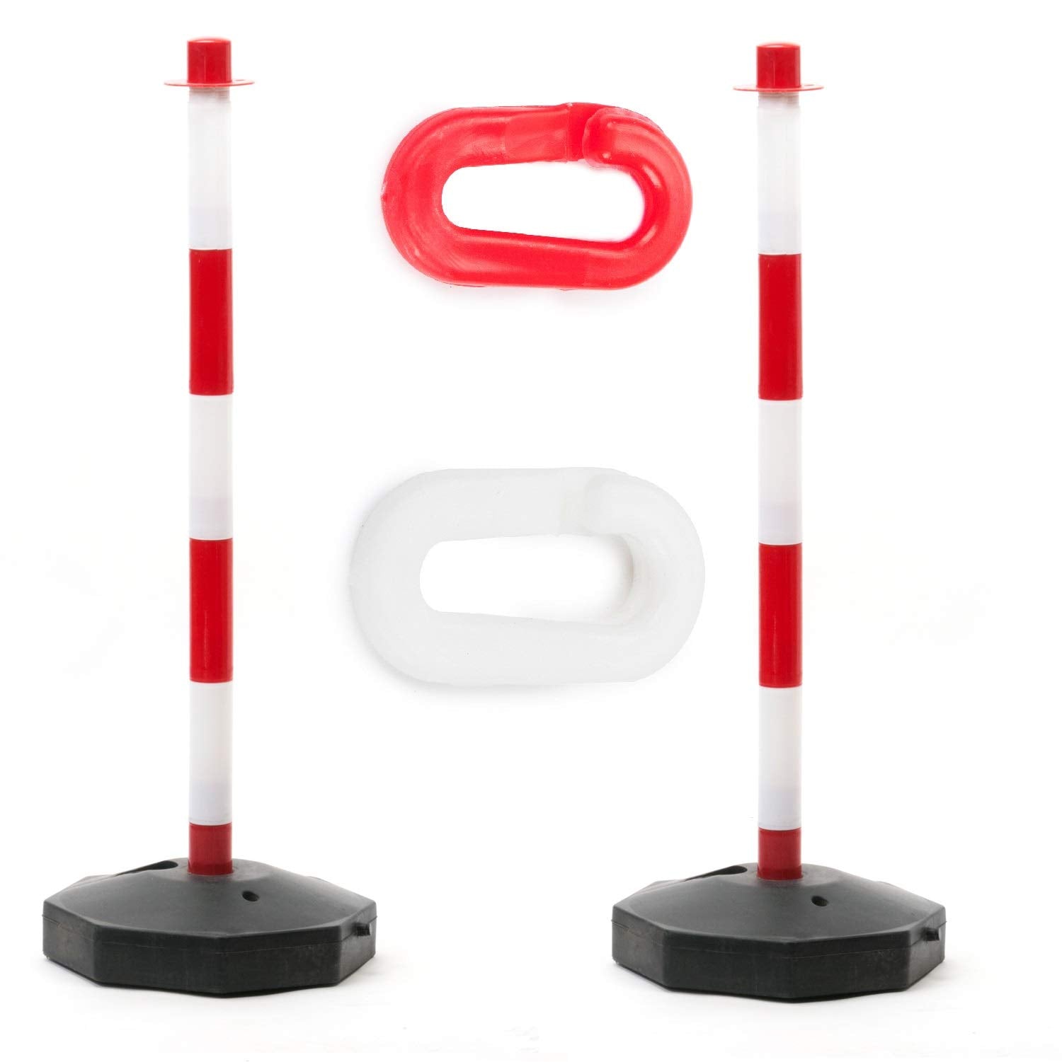 2er Set Absperrpfosten aus Kunststoff Rot-weiß inklusive 2 Verbindungsgliedern im Set als Kettenpfosten 90cm hoch mit Wasser oder Sand befüllbar leicht aufzubauen von Marwotec aus Deutschland