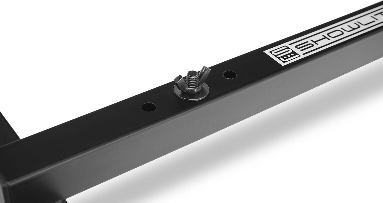2er Set Showlite FLS-20 PAR Licht Bodenstative (2-fach Bodenstative zum Aufstellen von zwei Scheinwerfern, Grundfläche 55,5 x 25,5 cm, 6 cm hoch, stabile Konstruktion, ineinander stapelbar) Schwarz