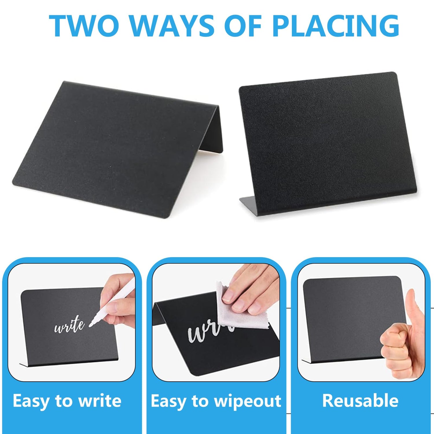 30 Stück Kreidetafel Klein, Mini Tafeln zum Beschriften, L-Form Preisschilder Aufsteller 100x75mm, Kreidetafel Aufsteller für Buffet Schilder Hochzeit Party Tischkarten (Schwarz)