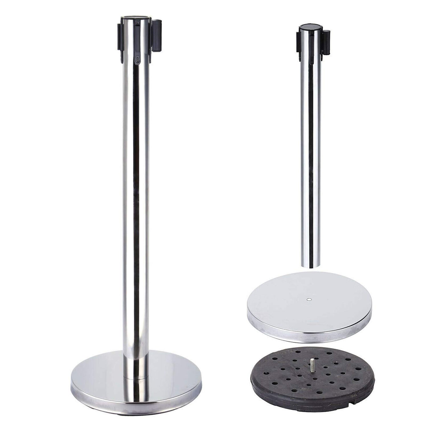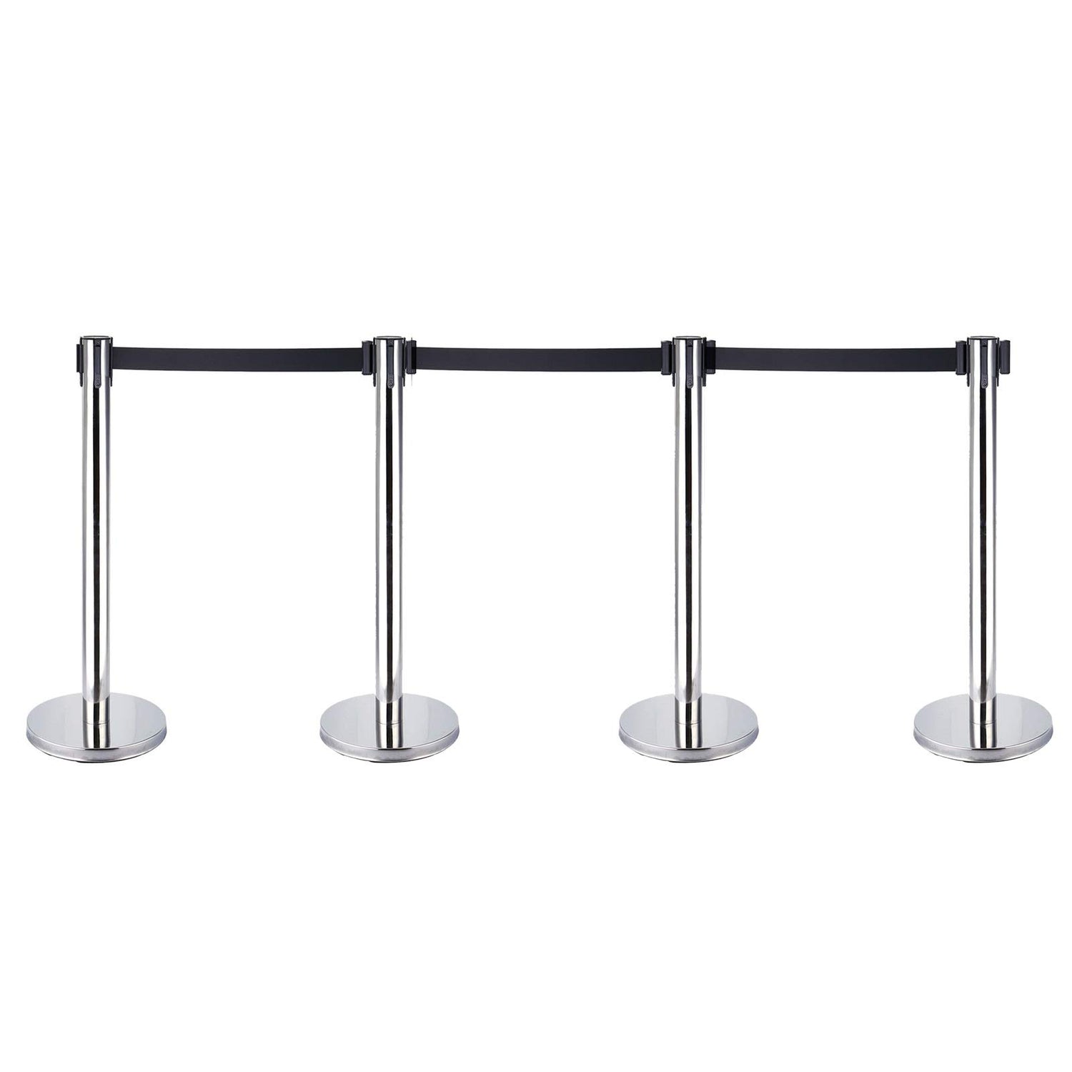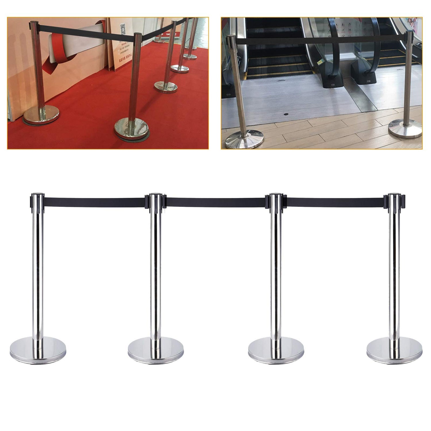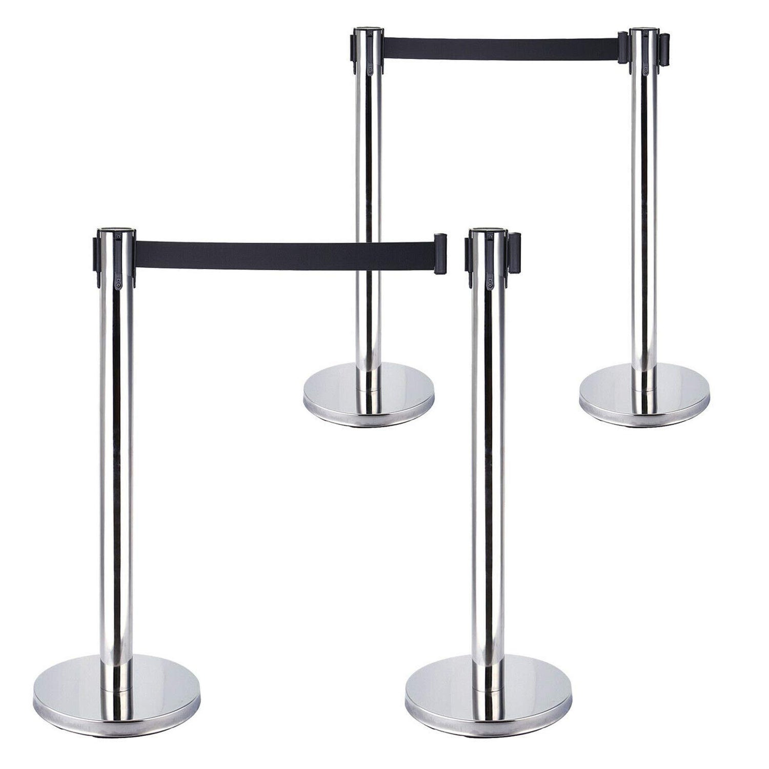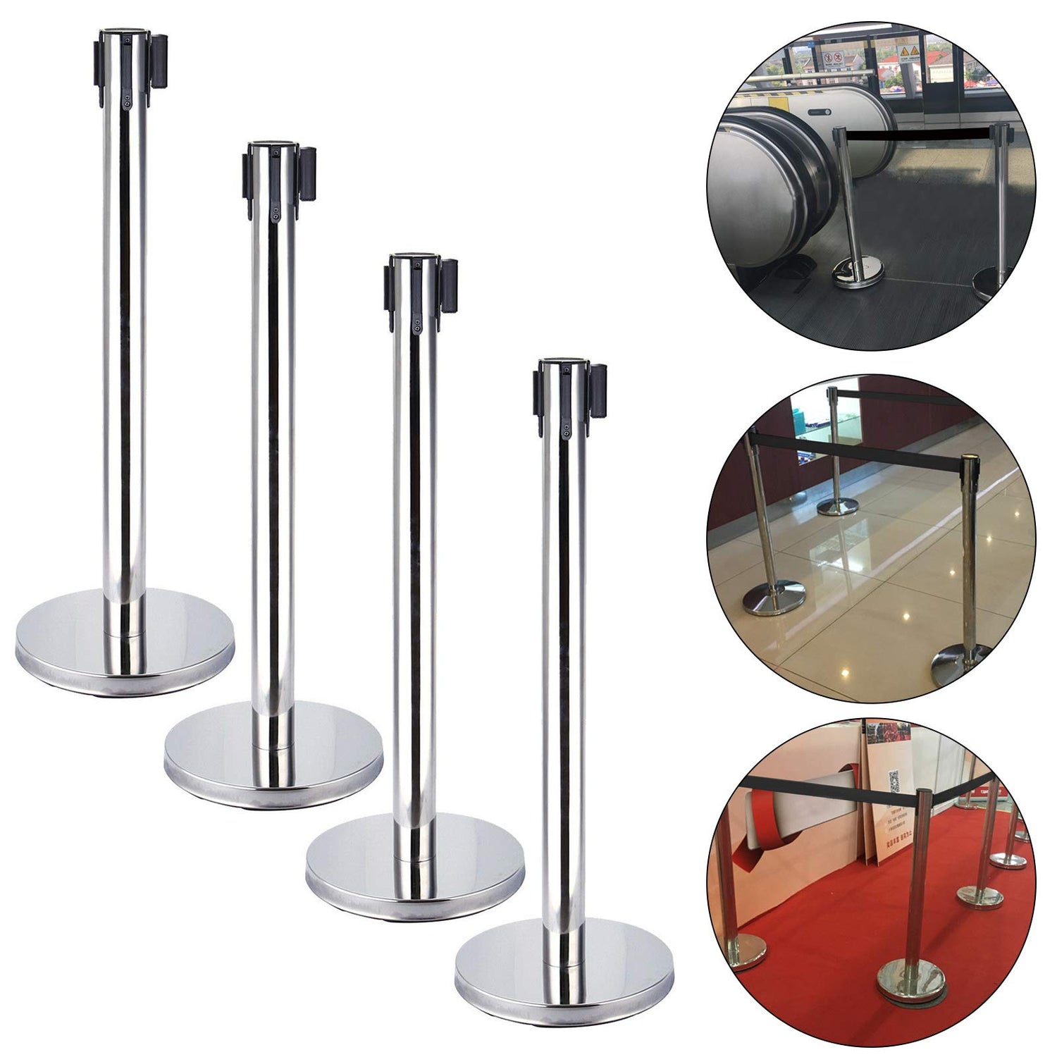 4 Stück Absperrständer Personenleitsystem Edelstahl Absperrbänder Absperrpfosten Abgrenzungspfosten mit 4 Gurtband Schwarz