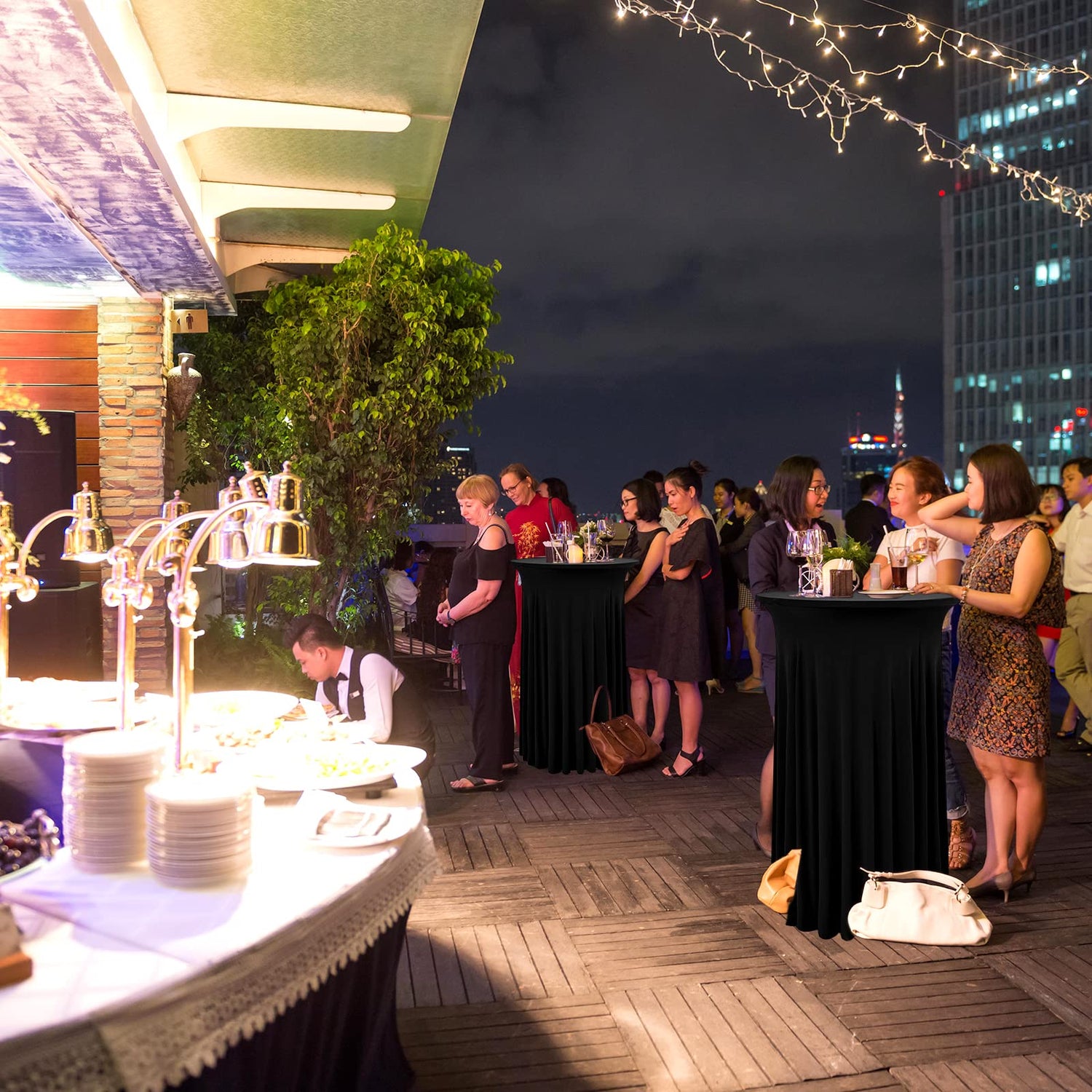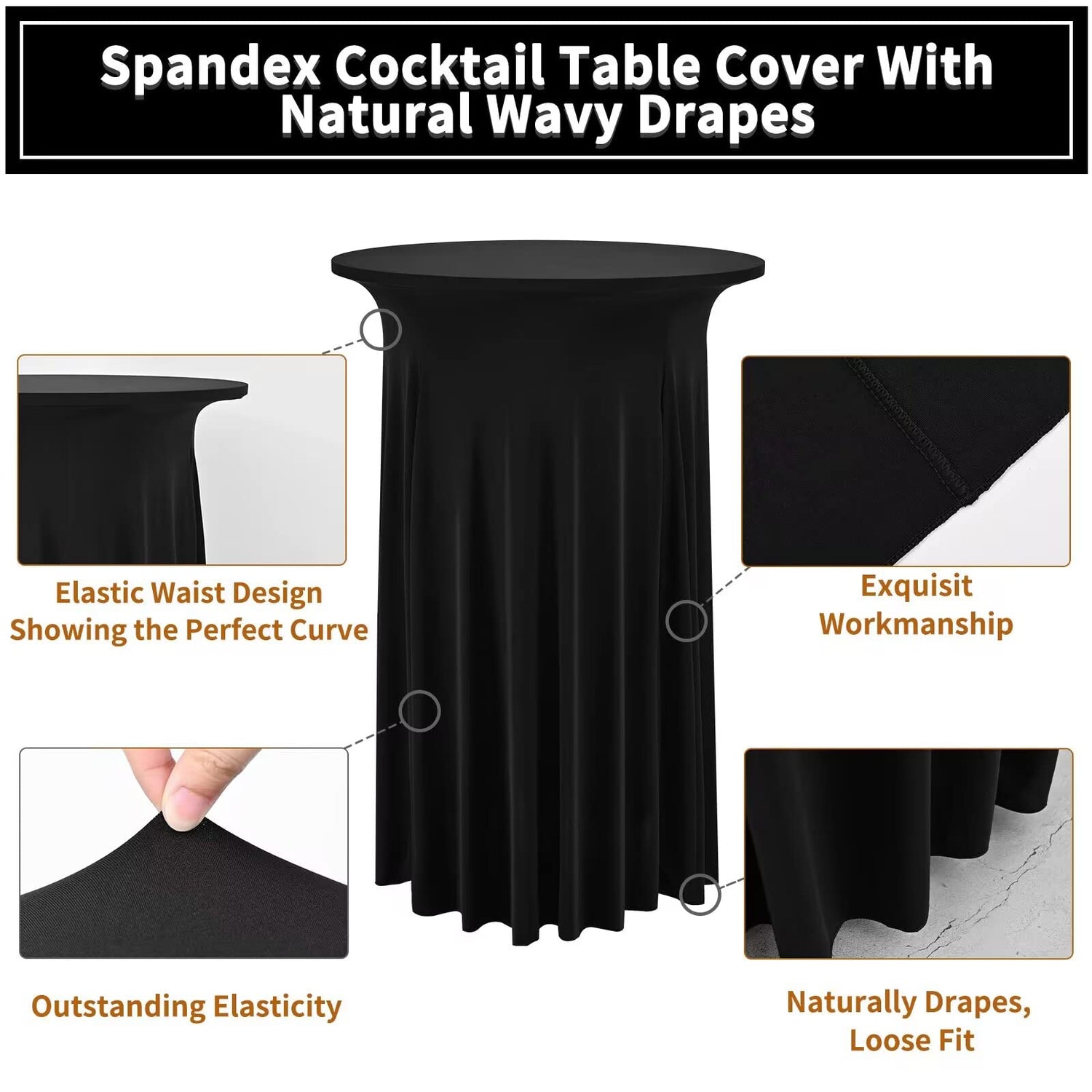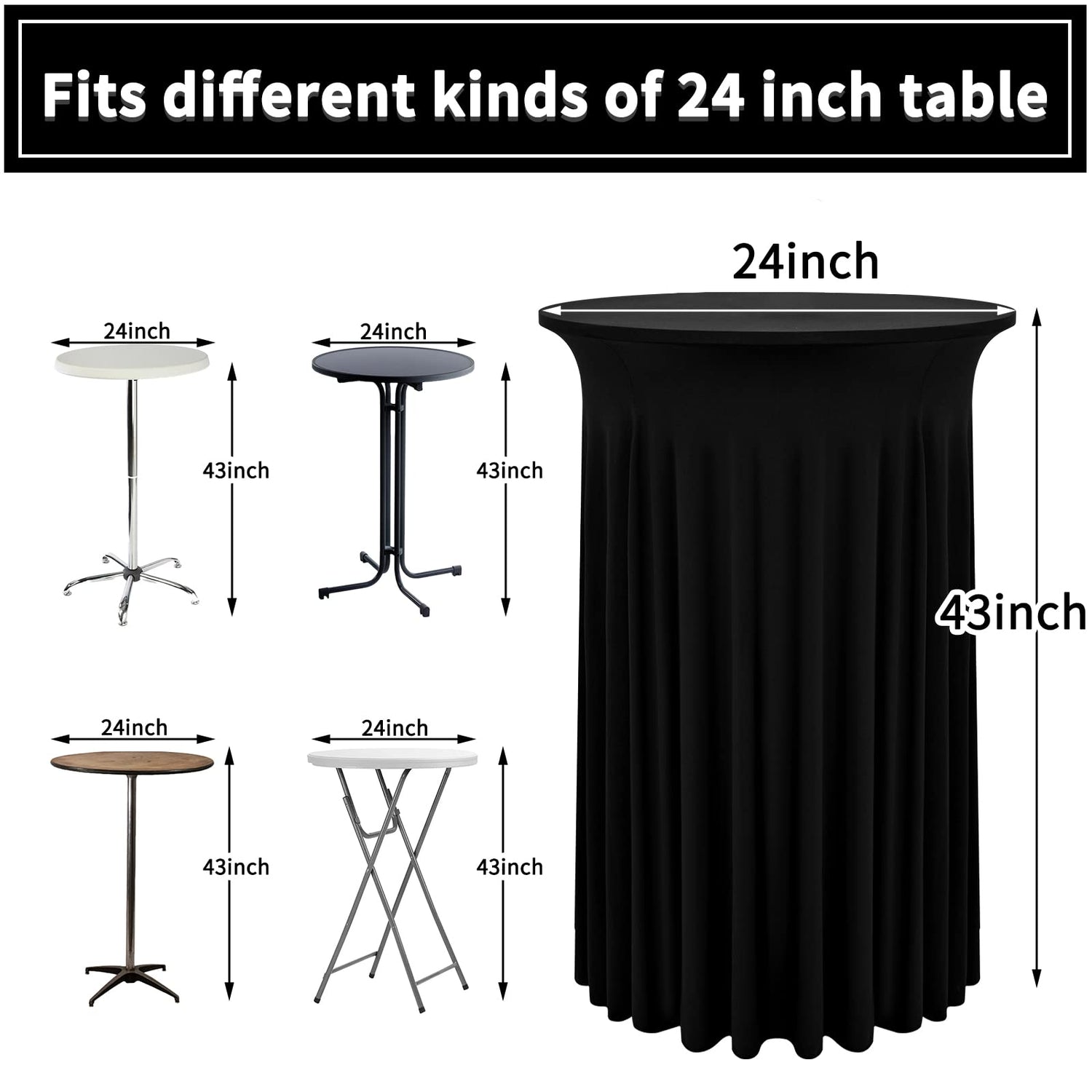 • 【Spandex-Cocktail-Tischrock】Ein Set enthält 4 Stück Cocktail-Rund-Spandex-Tischhussen mit Rock. Sie sind speziell für einen runden Stehtisch mit den Maßen 24" x 43" / 60 x 110 cm konzipiert. Diese Spandex-Tischdecke besteht aus 95 % Polyester und 5 % Spandex. Das Spandex-Material ist knitter- und schmutzabweisend, dick und undurchsichtig, hat eine große Elastizität und ist sehr dehnbar, erfordert kein Bügeln und kann problemlos unzählige Male gewaschen werden, ohne seinen Glanz zu verlieren Charme