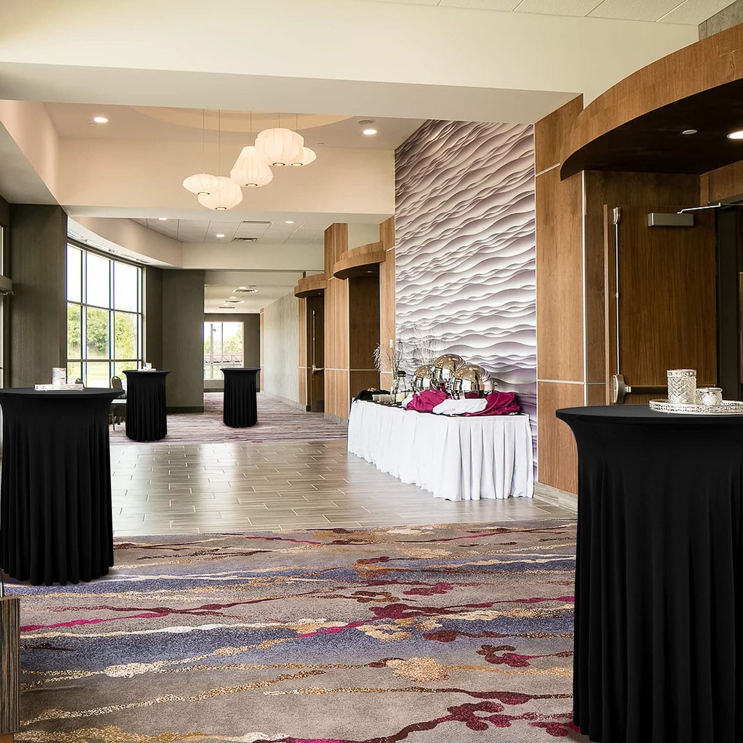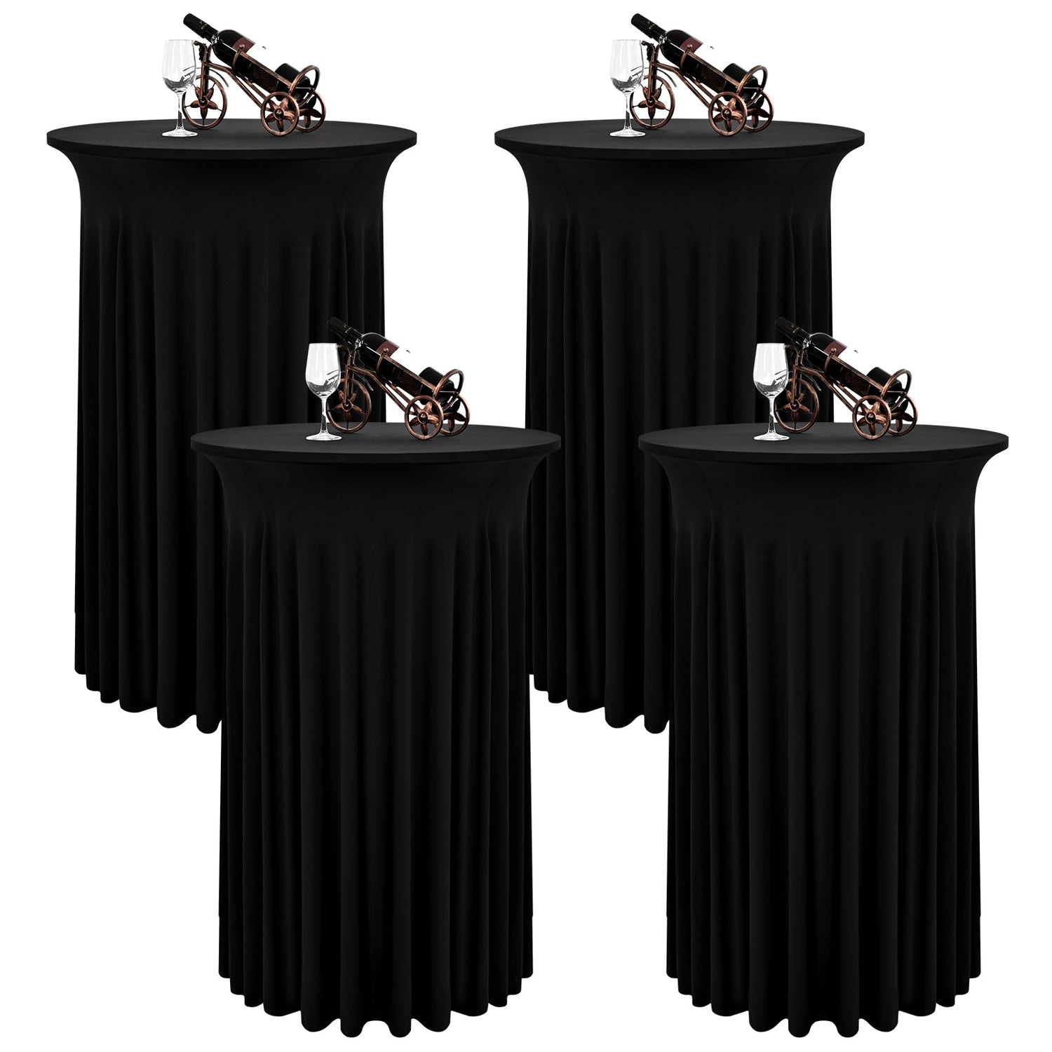 4er-Set Schwarz Stehtisch Hussen für Bistrotisch 60 x 110 cm Spandex-Stretch Tischdecke mit Rock, Runder Cocktail-Tischrocke für Hochzeit, Bar, Party, Geburtstag, Banketttisch