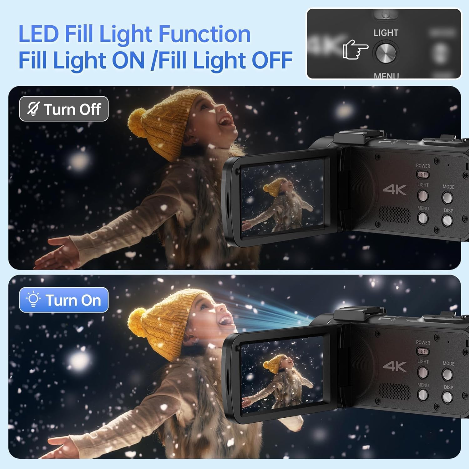 • 【4K 30MP Videokamera & 10-fach optischer Zoom】Diese Videokamera 4K nimmt atemberaubende Videos und beeindruckende Bilder mit 4K High Definition Auflösung, 30MP Klarheit und 24FPS auf. Sie bietet 10-fachen optischen Zoom, 12-fachen digitalen Zoom und 120-fachen intelligenten Zoom. Jetzt haben Sie eine zusätzliche Möglichkeit, Videos aufzunehmen, ohne ständig auf Ihr Mobiltelefon angewiesen zu sein, was Platz spart. Perfekter Camcorder für Anfänger und Enthusiasten gleichermaßen.