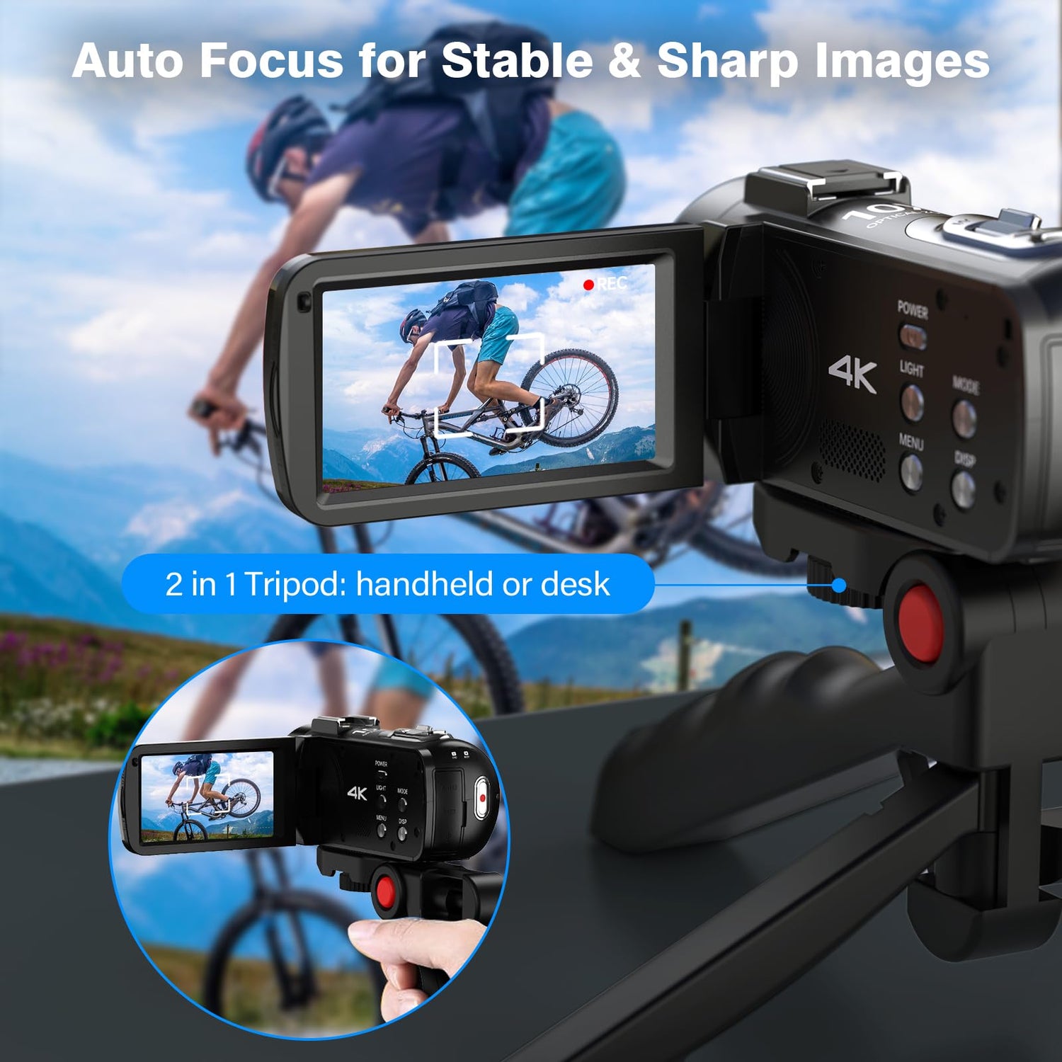 • 【3,0-Zoll-IPS-Touchscreen und Autofokus】 Dieser 4K Camcorder verfügt über einen 3,0-Zoll-HD-IPS-Touchscreen, der ein intuitives Navigationserlebnis bietet. Dank seines leichten und tragbaren Designs lässt er sich bequem in der Tasche tragen. Die Kamera 4K für Vlogging unterstützt auch den Standard-Autofokus und sorgt für klare und schöne Bilder und Videos, unabhängig von der Entfernung (von 10 cm bis unendlich). Eine ausgezeichnete Wahl für Video- und Fotografie-Enthusiasten.