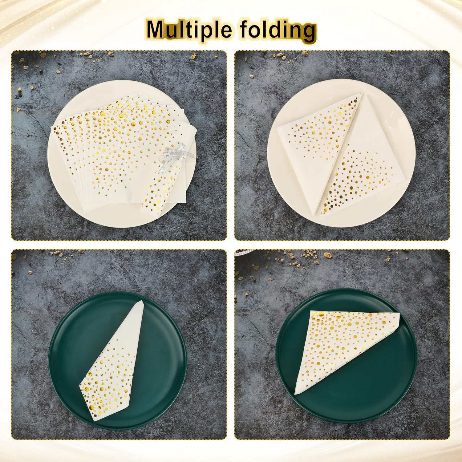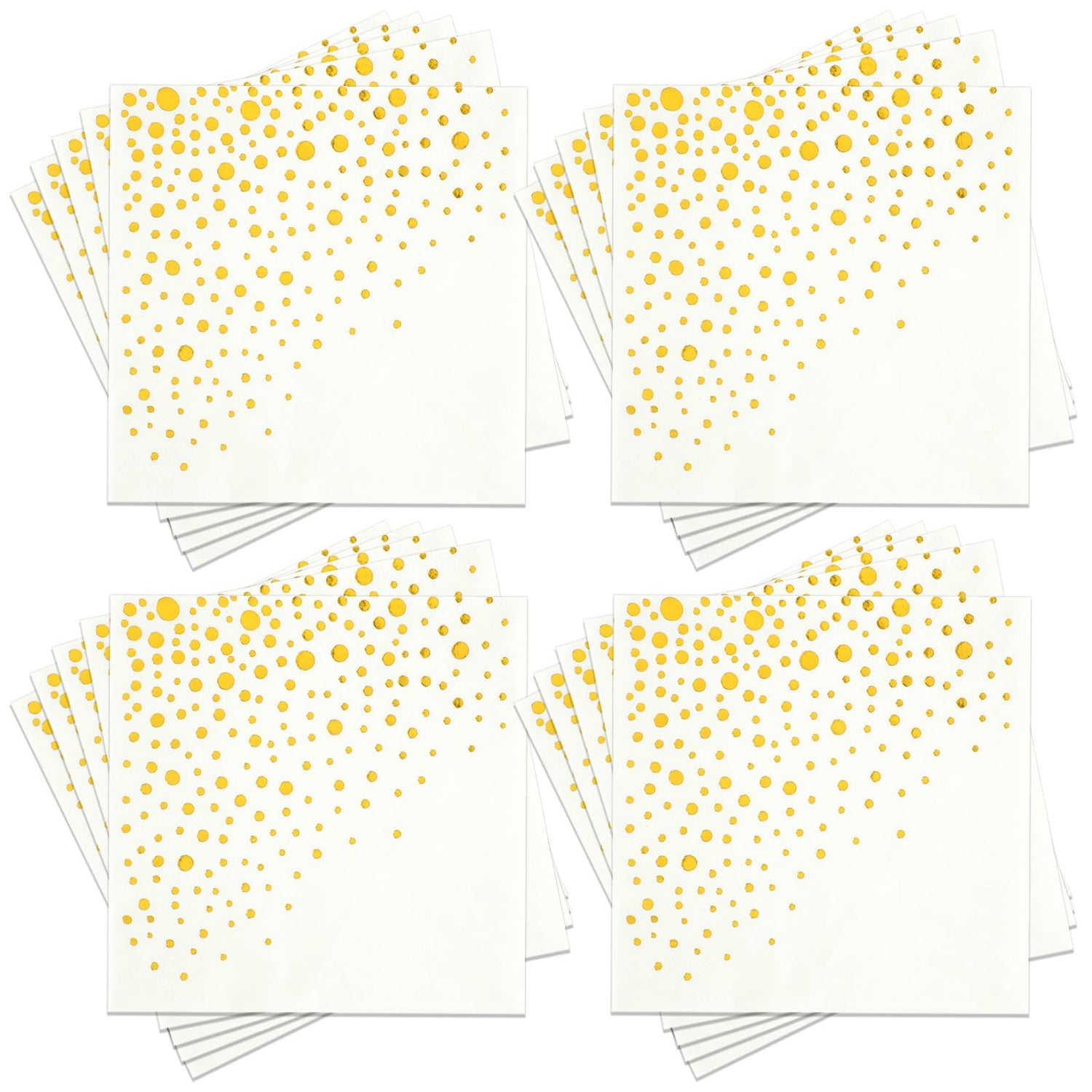 60 Stück Weiß Gold Gepunktet Party-Servietten,Servietten Gold Dots Papierservietten Golden Foiled Papierservietten Weiß mit Goldenen Cocktail-Servietten Party-Servietten Abendessen Servietten,33x33cm
