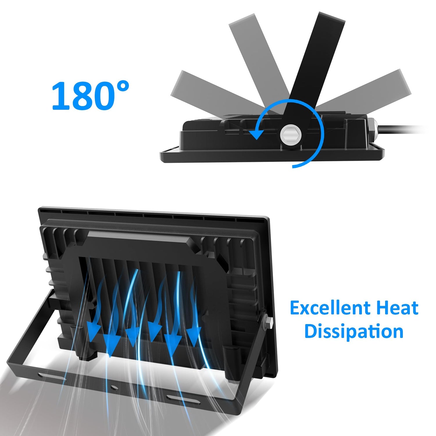 • 【Verbesserte Wärmeableitung】 Das Design des Gehäuses aus Aluminiumdruckguss, die effiziente Kühlstruktur und das Hochtemperaturglas machen diese LED-Sicherheitsbeleuchtung für den Außenbereich langlebiger und zuverlässiger. Es kann diesen LED-Scheinwerfer vor extremen Wettereinflüssen schützen.