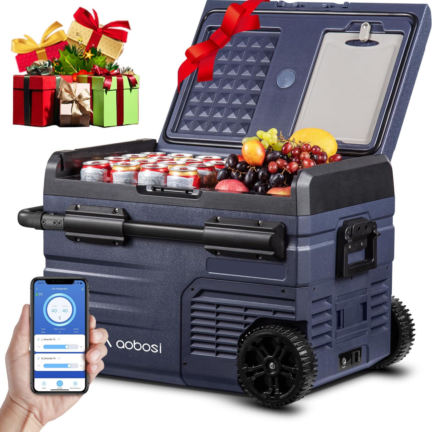 AAOBOSI 35 L Kompressor Kühlbox Dual Zone, Kühlbox Auto Mit WIFI-APP-Steuerung USB-Anschluss, 12/24 V und 100-240 V Kühlbox bis -20 °C für Auto, Lkw, Boot, Reisemobil,Camping