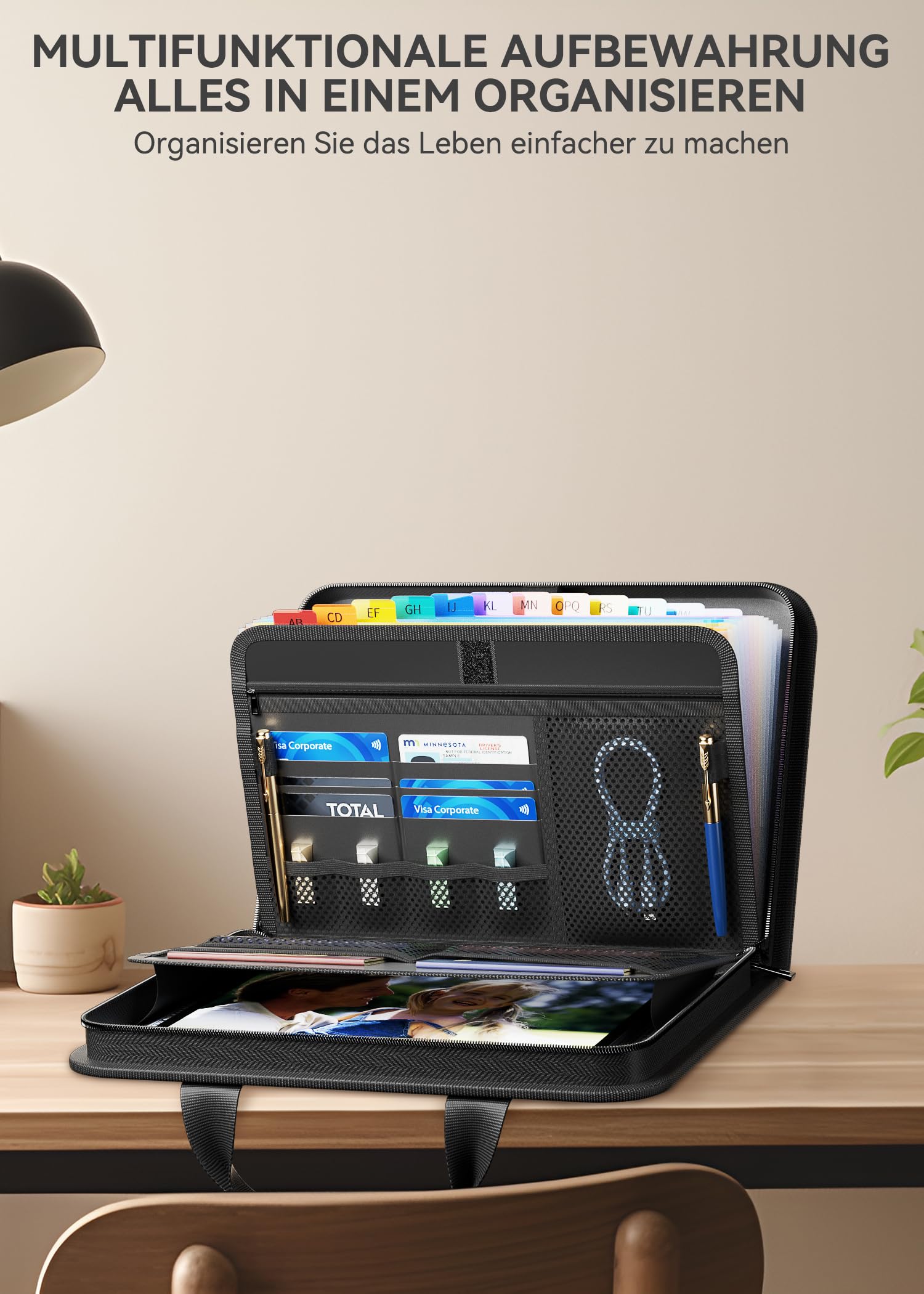 • 【MULTIFUNKTIONALE AUFBEWAHRUNG】Innovatives Mehrfachfach-Design organisiert alles an einem Ort. Unser Dokumenten-Organizer hat 13 einzelne Fächer, 1 Reißverschlussfach, 1 Hauptfach, 2 Stiftschlaufen, 6 Kartenfächer, 4 USB-Fächer und 4 Netztaschen in Passgröße. Organisieren macht das Leben einfacher.