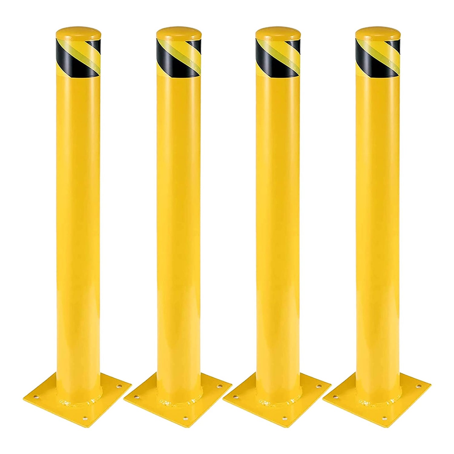 Absperrpfosten Poller, 107cm Pollerpfosten, Rammschutz-Poller für Parkplatz, Verstärkte metallisch parkplatzsperre, Gelb fahrbahnmarkierung leitpfosten für den Parkplatz (Φ11,4 cm,4pcs)