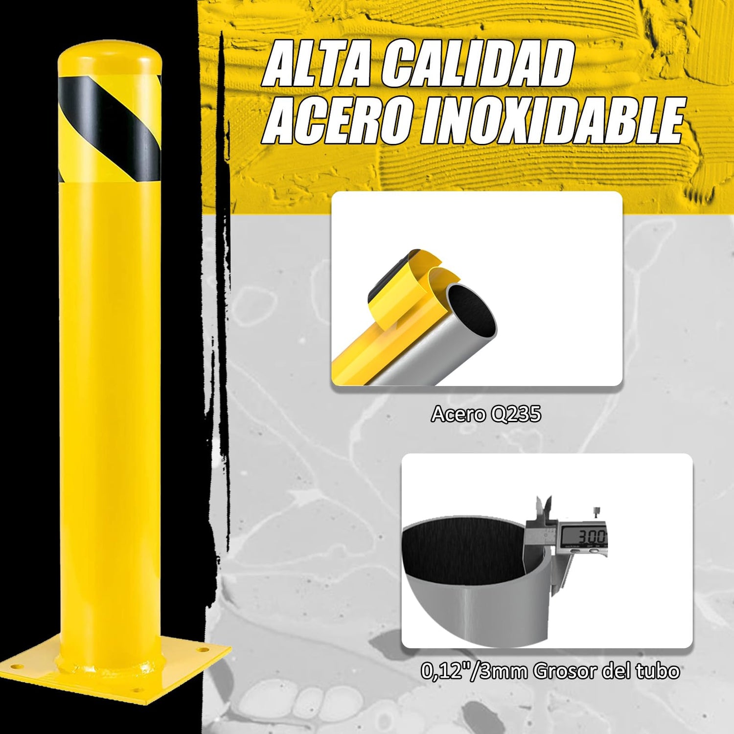 • [Einfach zu installieren] Der Parkpoller lässt sich dank der vier vorgebohrten Befestigungslöcher im Sockel leicht installieren. Die gelben Verstärkte Metallstützen werden mit vier Ankerbolzen und einem Schraubenschlüssel geliefert. Suchen Sie einfach die richtige Stelle, bohren Sie die Löcher, setzen Sie die Ankerbolzen (im Lieferumfang enthalten) ein und ziehen Sie sie fest.