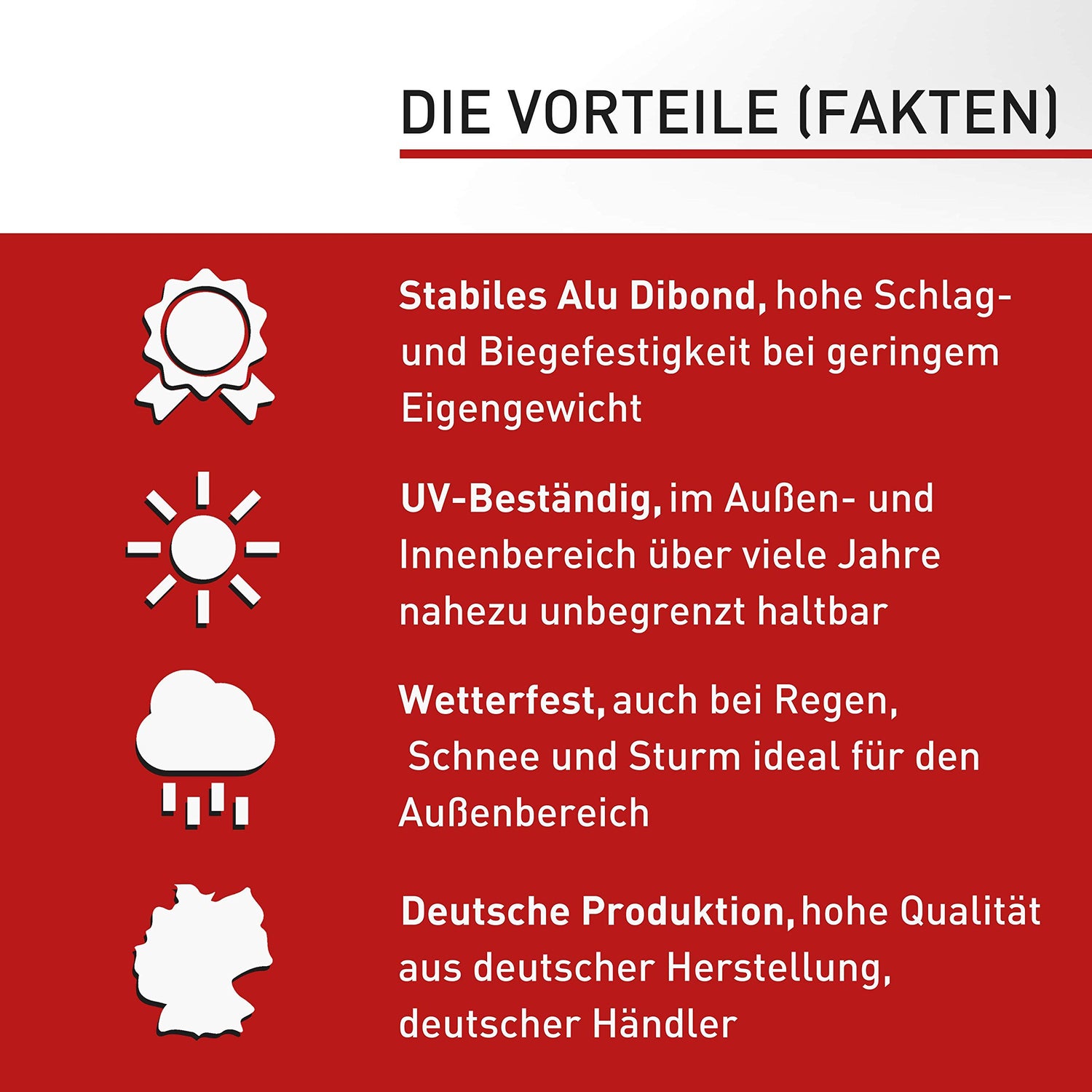 • ✔️ 100% WETTERFEST - Stabiles und kratzfestes Schild aus langlebigem und wetterfestem Kunststoff mit UV-resistentem und witterungsbeständigem Aufdruck (besonders gut für den Außenbereich geeignet)