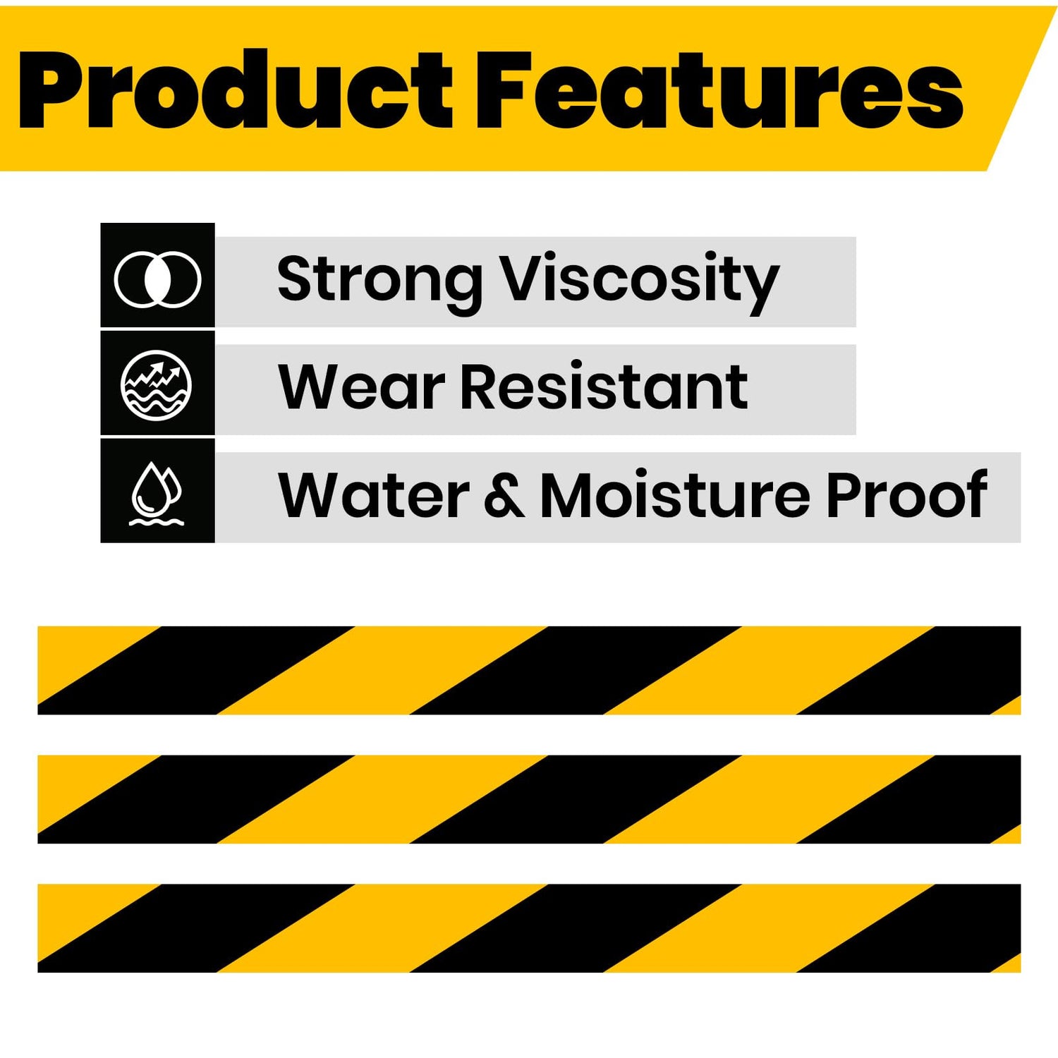 • 2. [Wetterbeständig] Gefahren Markierungs Klebeband ist wasserdicht. Sie eignen sich für den Außenbereich auch bei Regenwetter.