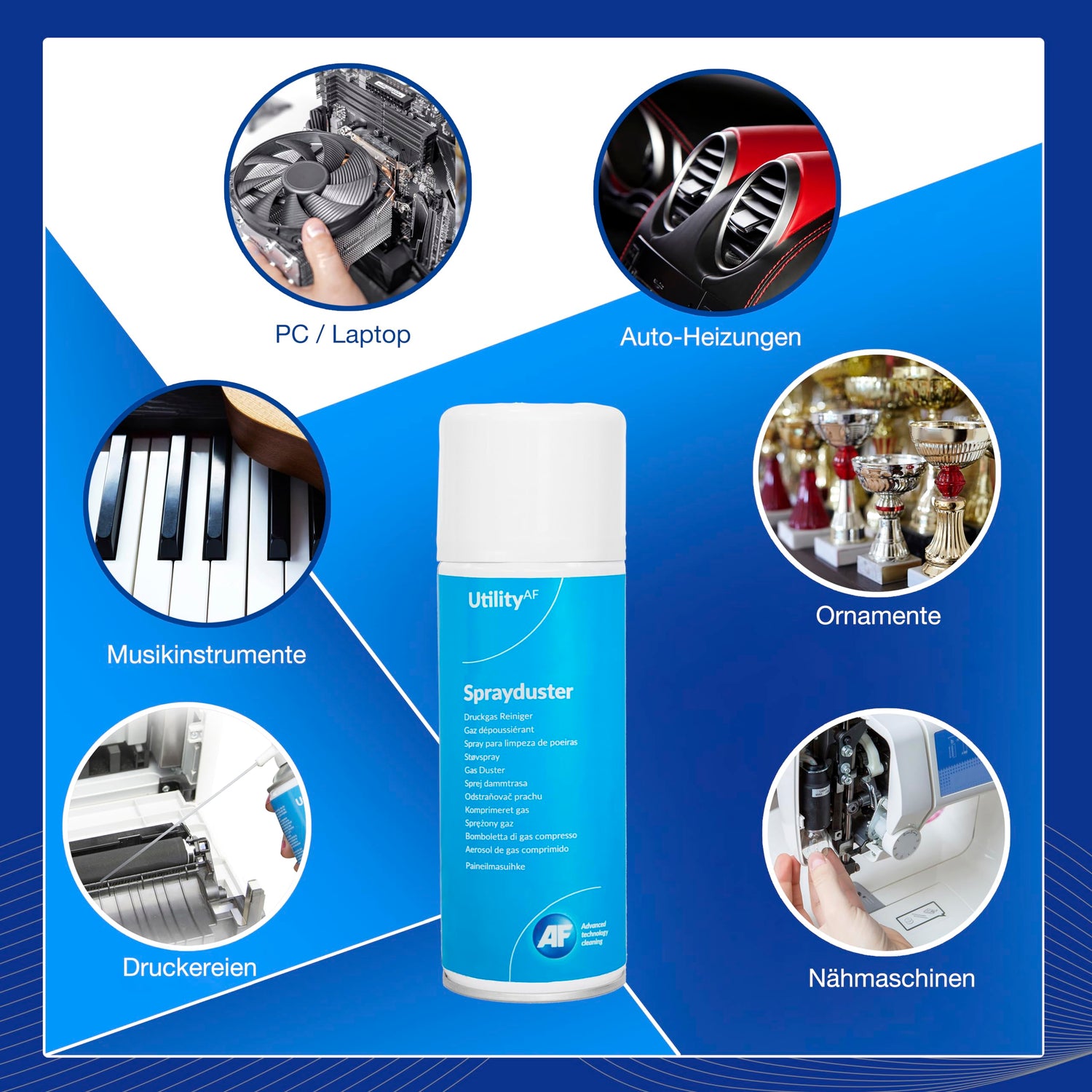 AF Utility Druckluftspray/Druckluftreiniger - Reinigungssprühdose - druckluftspray dose/Druckluft aus der Dose (Air Duster) – PC und Tastatur Reiniger – 2 x 400 ml Packung