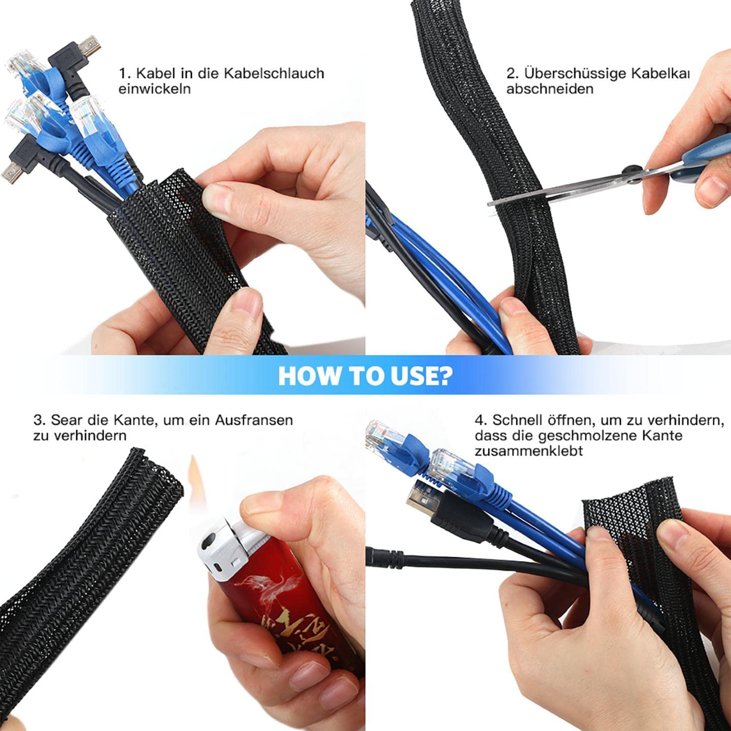 • ✔FLEXIBLES SCHNEIDEN- Unser Kabelmantel passt sich ganz nach dir an. Der Schlauch ist einfach mit der Schere auf die gewünschte Länge zu bringen und fasst verschiedene Kabel. Die Enden mit dem Feuerzeug etwas verschmelzen, damit nichts aufdröselt.