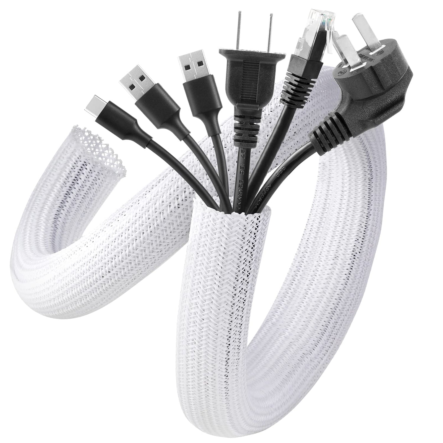 AGPTEK vergrößer Kabelkanal, Durchmesser 19-29mm, selbstschließend Kabelschlauch, gewebter Kabelmantel zuschneidbar, flexibel 2 * 1.5m, verstecken im Schreibtisch, TV, Boden (White)