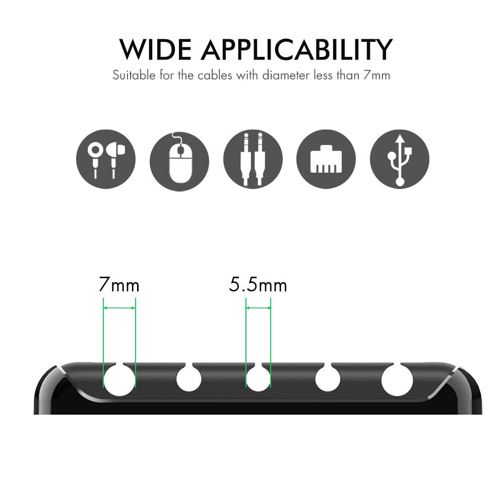 AHASTYLE Kabelhalter Kabel Organizer mit 5 Steckplätzen Kabelmanagement Schreibtisch Kabelclip Organisation für Büro Zuhause und Auto USB-Kabel/Netzkabel/Draht (Schwarz)