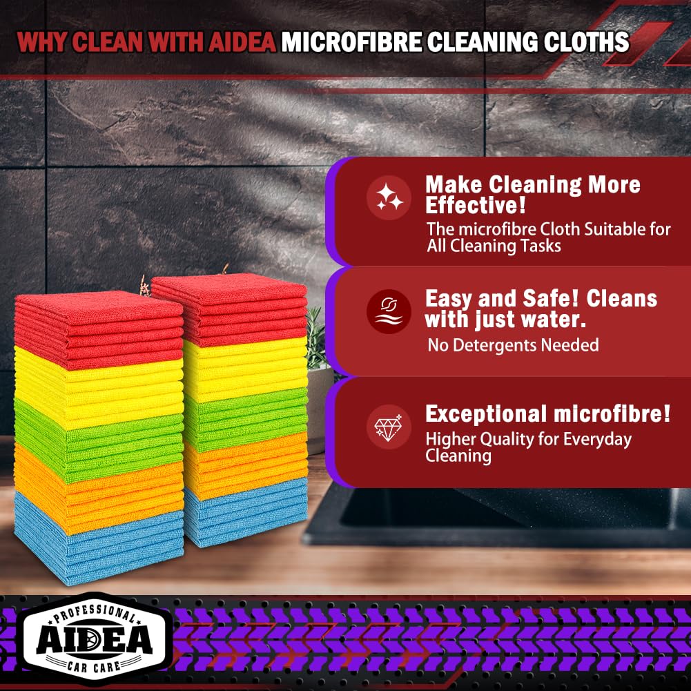 AIDEA Mikrofasertücher Mikrofaser Reinigungstücher 100 Pack, Allzweck Autotuch, fusselfrei, kratzfrei, saugfähige Microfasertücher für Autos, SUVs, Wohnmobile und Boote Geschenke, 30X30 cm