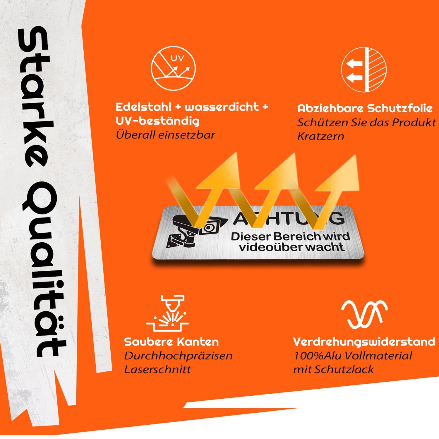 • Das Material ist stark: Unser videoüberwachungs schild besteht aus hochwertigem aluminium und ist langlebig