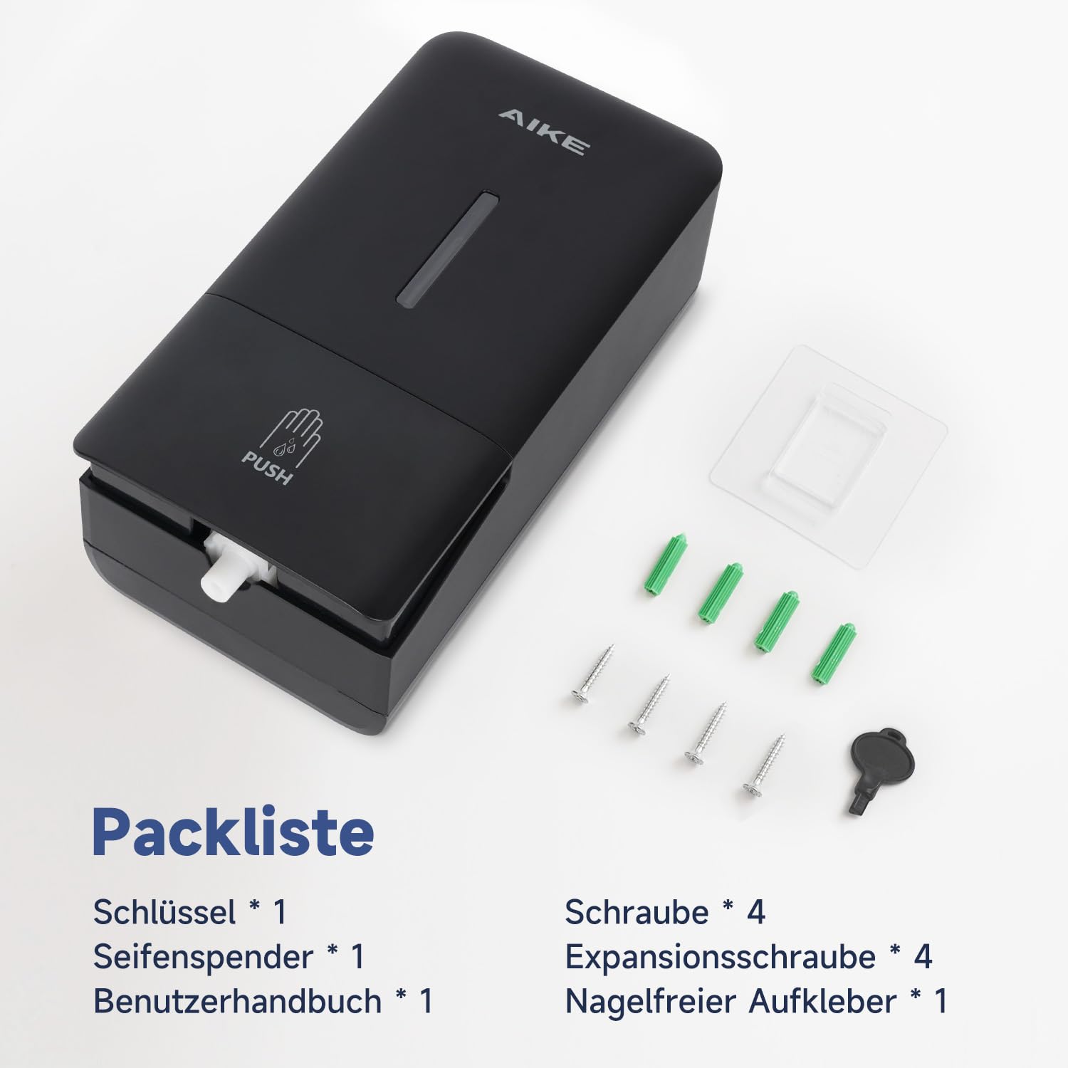 AIKE AK1006 800ML Seifenspender Wandbefestigung Ohne Bohren, Manueller Wandseifenspender aus Kunststoff, Flüssigseifenspender für den öffentlichen Gebrauch, Schwarz Matt
