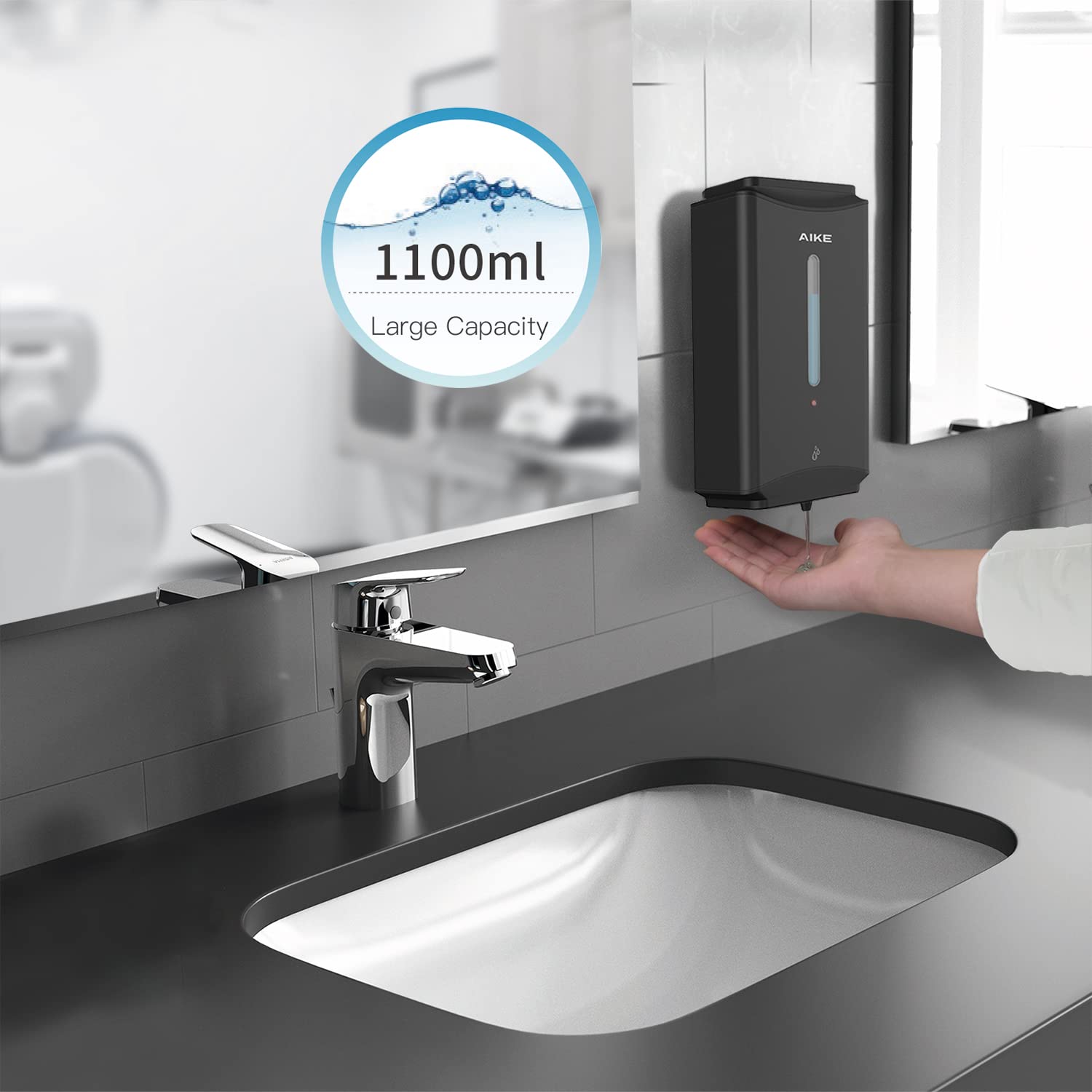 AIKE Kommerzielle Wandhalterung Automatischer Flüssigseifenspender Edelstahl-Finish 1100ml Großes Fassungsvermögen Mattschwarz