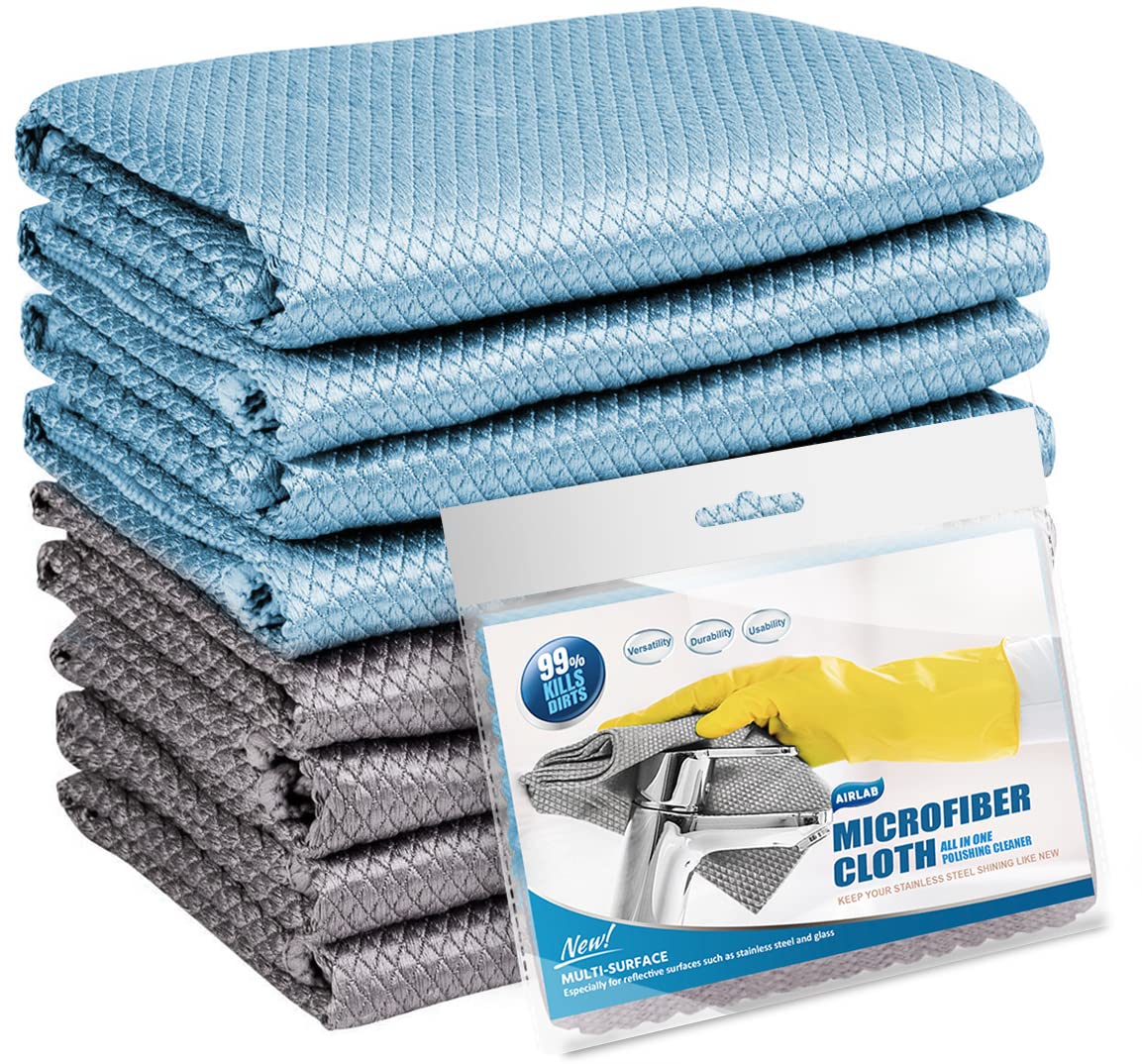 Airlab 8X Mikrofasertücher Putztücher, Nano Streifenfrei Fenstertuch Geschirrtücher, Fishscale Reinigungstücher für Auto, Fenster, Brille, Küche, Glas, Spiegel, Wasserhahn und Bad, 40x30 cm