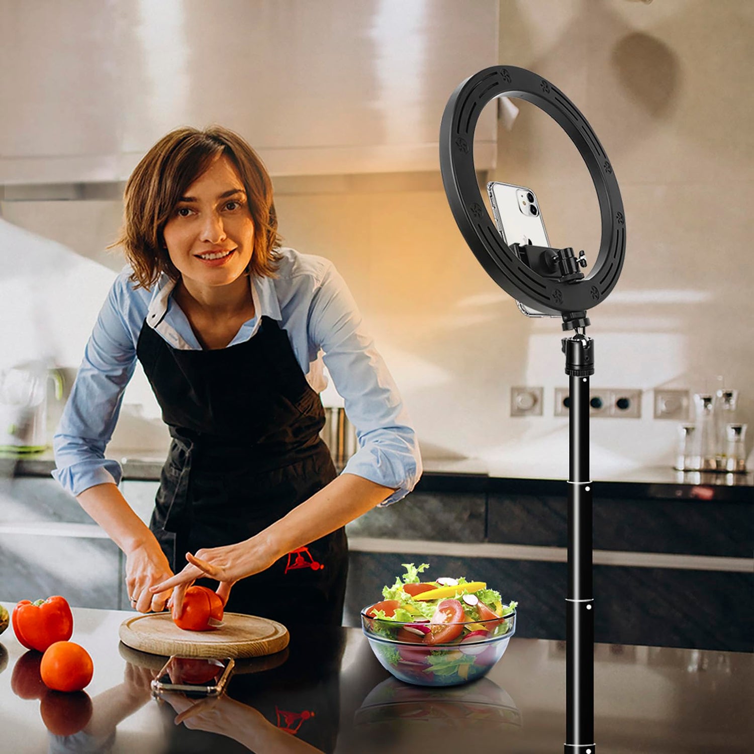 • 【Großes Ringlicht】 diesem Kreislicht herauszuholen. Der Telefonclip kann auf 3.9 Inch (10cm) verlängert werden. Es ist mit den meisten Smartphones mit oder ohne Hülle kompatibel. Und mit dem Telefonclip können Sie Ihr Telefon horizontal oder vertikal installieren.