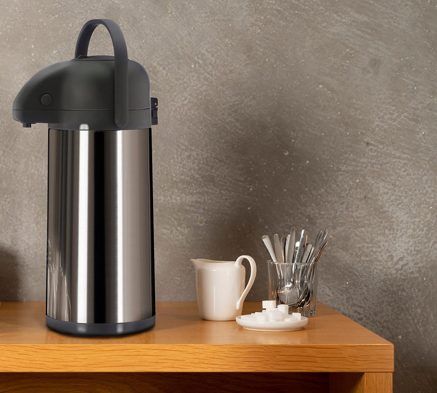 • PREMUM-ISOLIERLEISTUNG MIT EDELSTAHL: Die Pumpkanne glänzt mit hervorragender Isolierleistung und serviert Kaffee und Tee wie frisch zubereitet. Der Inhalt bleibt 12 Std. heiß oder 24 Std. kalt.