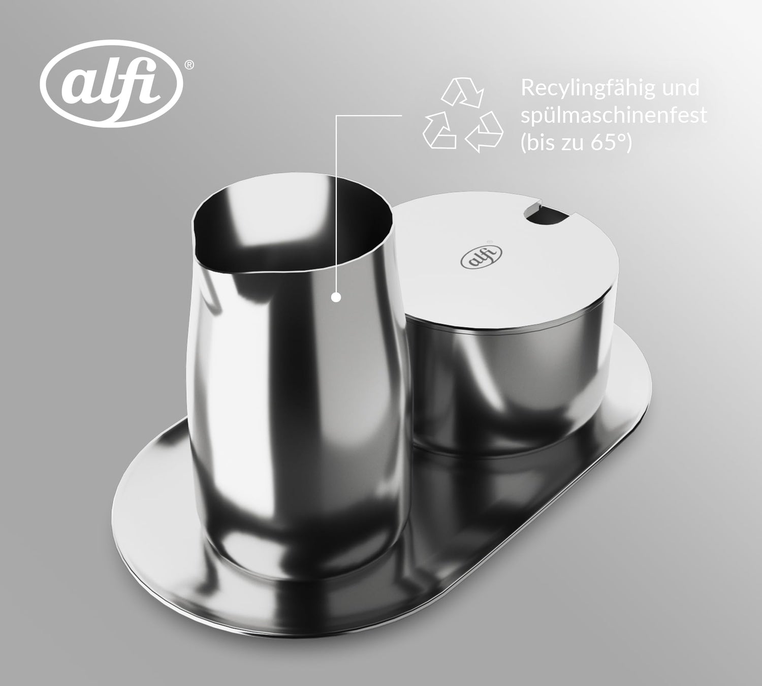• STILVOLLES DESIGN: Verleihen Sie Ihrer Kaffeetafel Eleganz mit dem alfi Milk & Sugar Set aus hochwertigem Edelstahl.