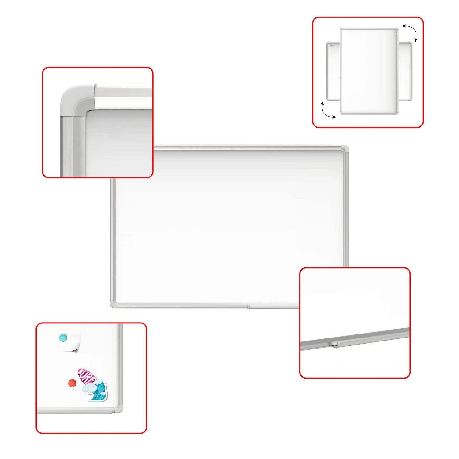 ALLboards Magnetisches Whiteboard 240x120cm Magnettafel mit Aluminiumrahmen Premium EXPO und Stifteablage, Weiß Magnetisch Tafel, Trocken Abwischbar, Wiederbeschreibbar Weißtafel