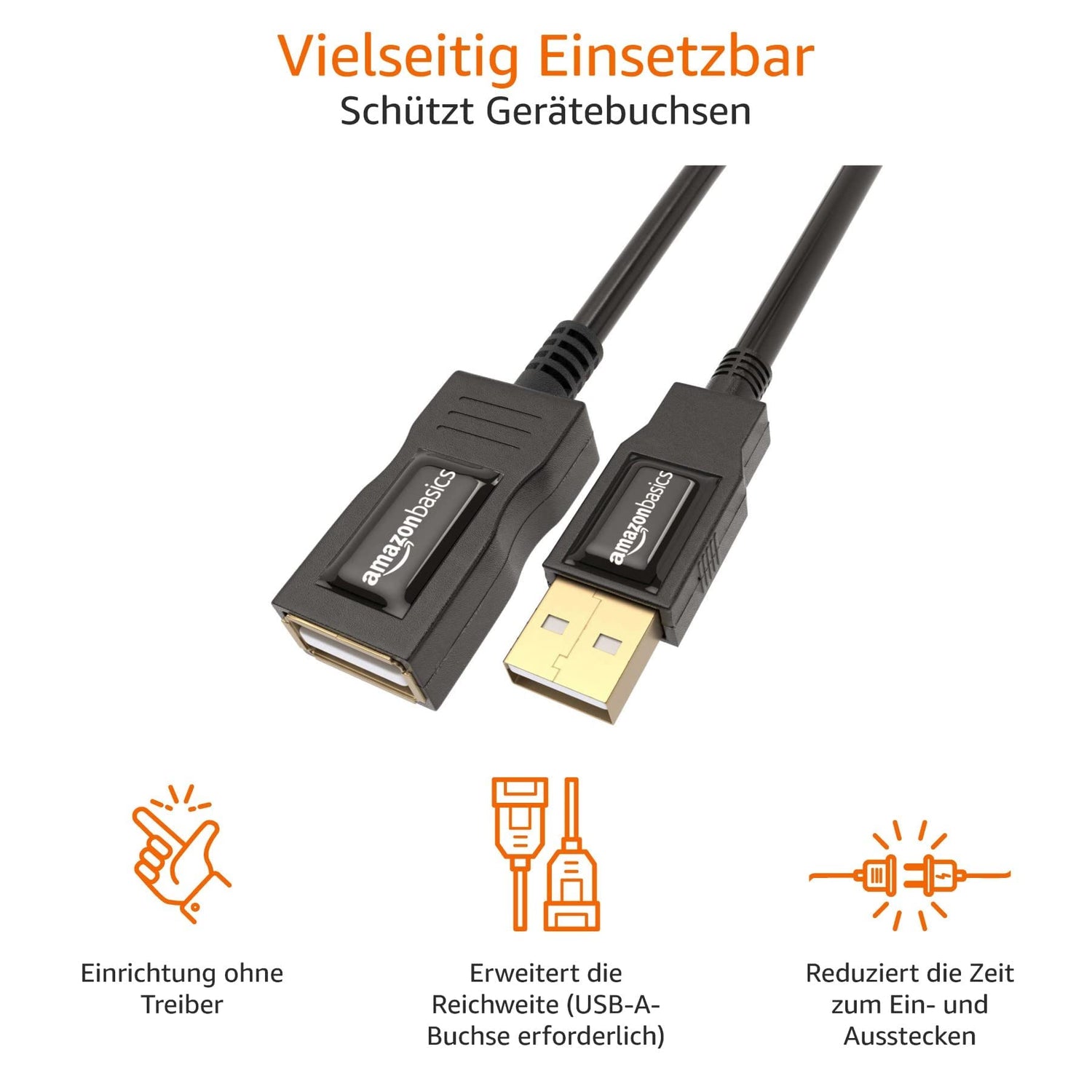 Amazon Basics 7GV4 USB-A 2.0 Stecker auf A-Buchse Verlängerungskabel (1 m), Schwarz