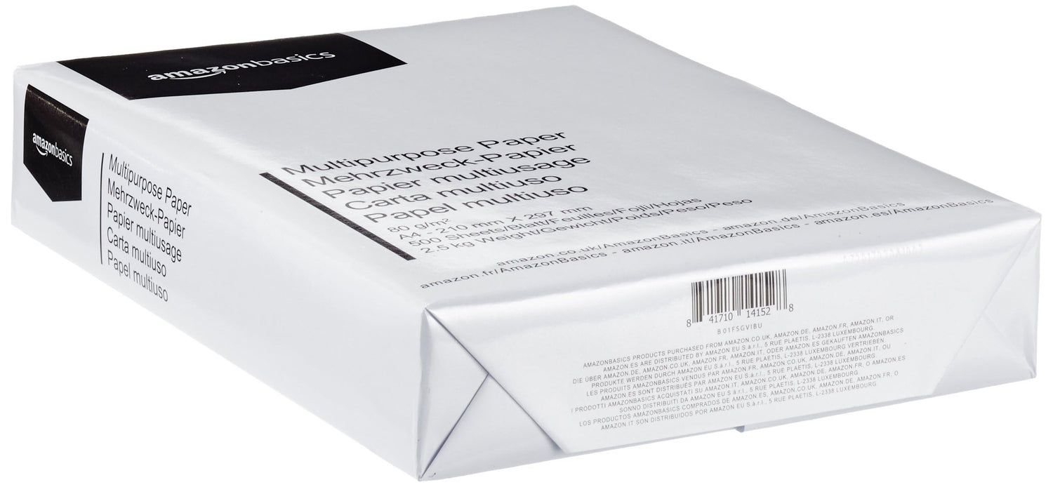 Amazon Basics Druckerpapier, DIN A4, 80 g/m², 2500 Stück, 5 Packungen mit 500, Weiß