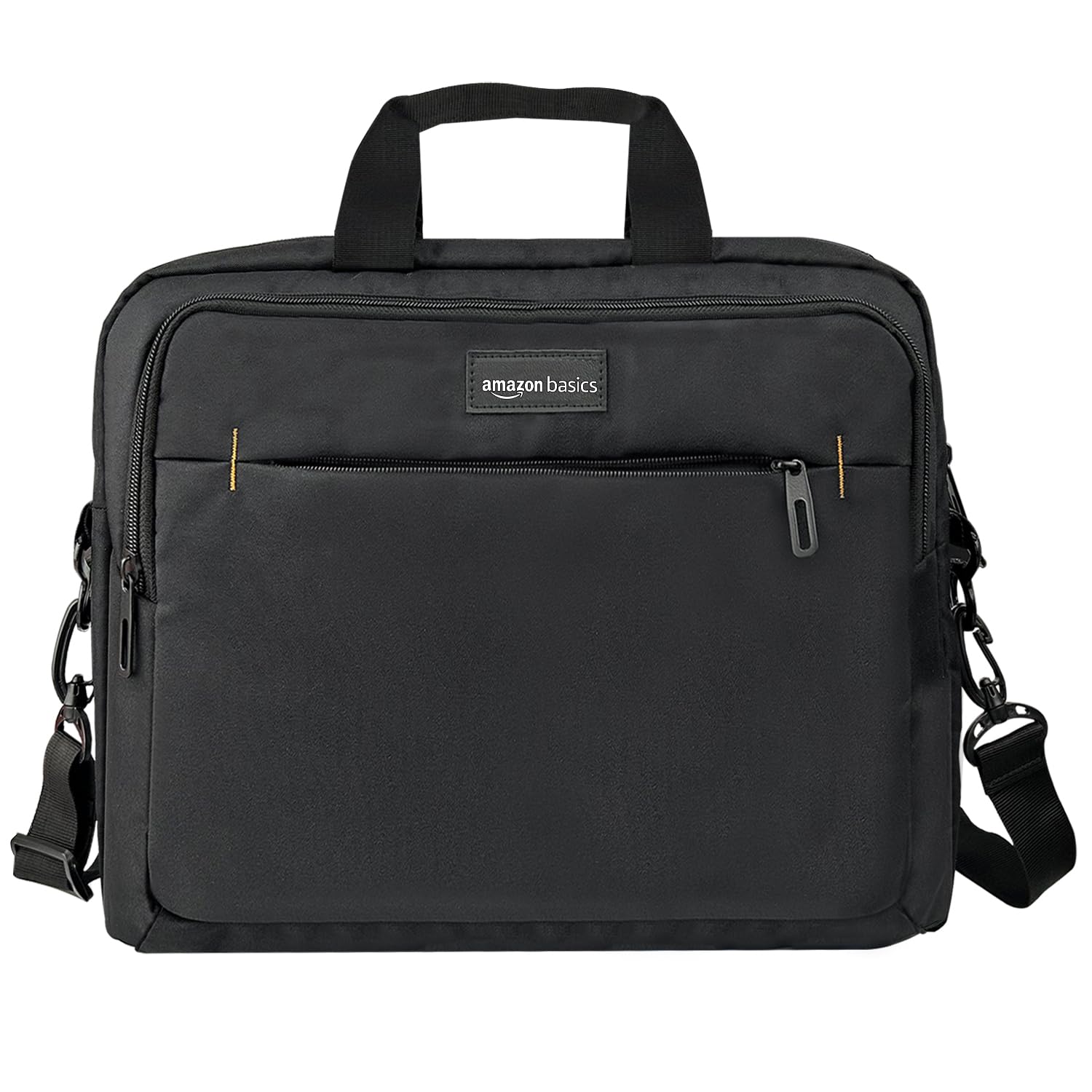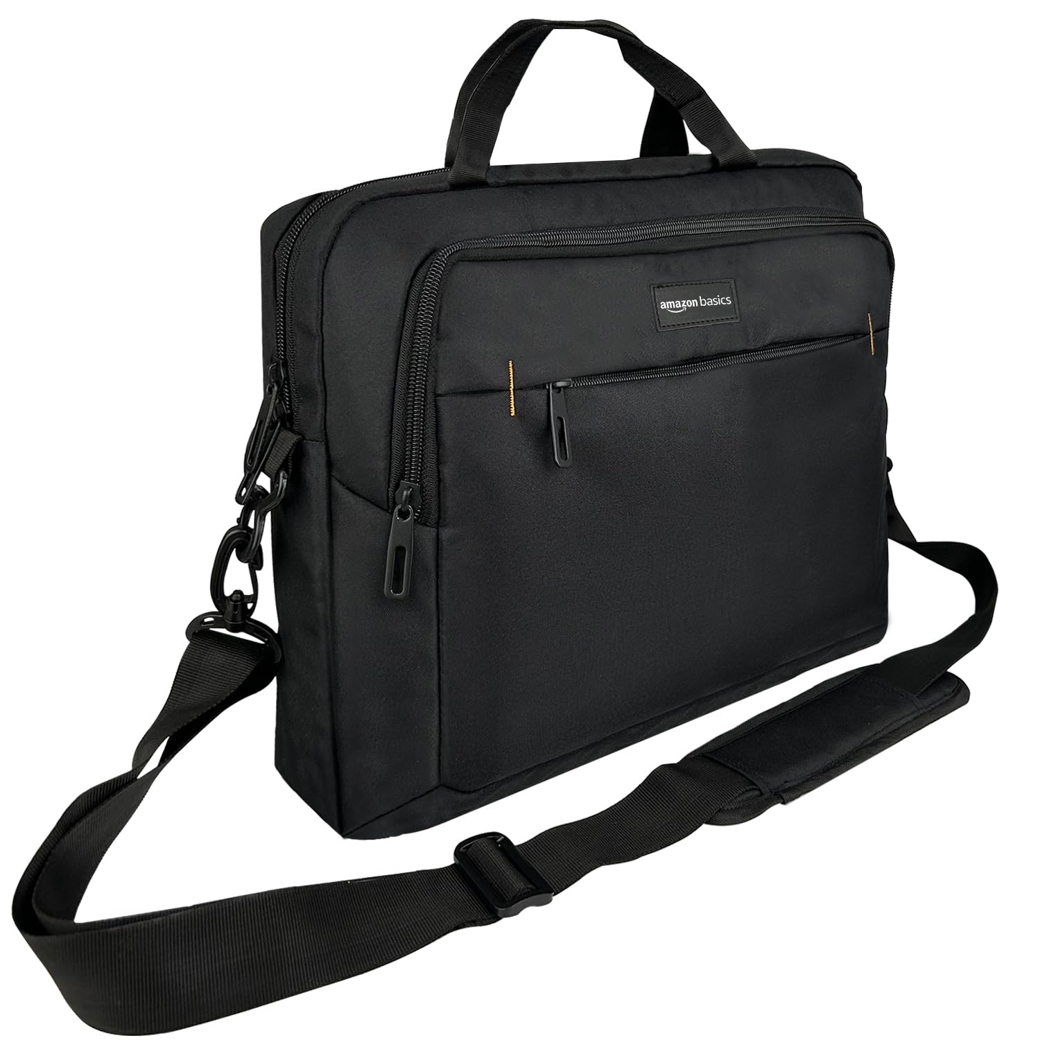 Amazon Basics- kompakte Laptoptasche, Umhängetasche/Tragetasche mit Taschen zur Aufbewahrung von Zubehör, für Laptops bis zu 15,6 Zoll (39,6 cm), Schwarz, 1 Stück