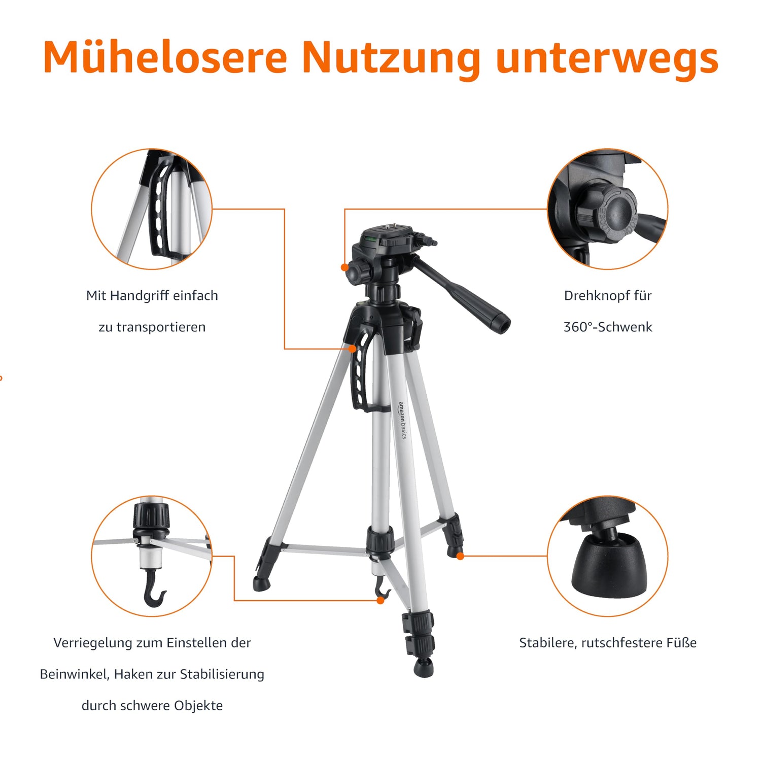 Amazon Basics Leichtes Kamera-, DSLR- und Fernglasstativ mit Tasche, 1.52 m, Schwarz