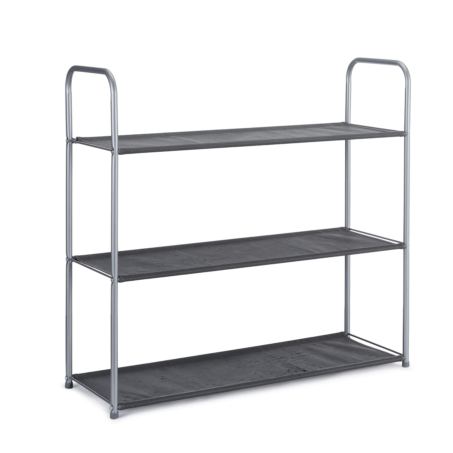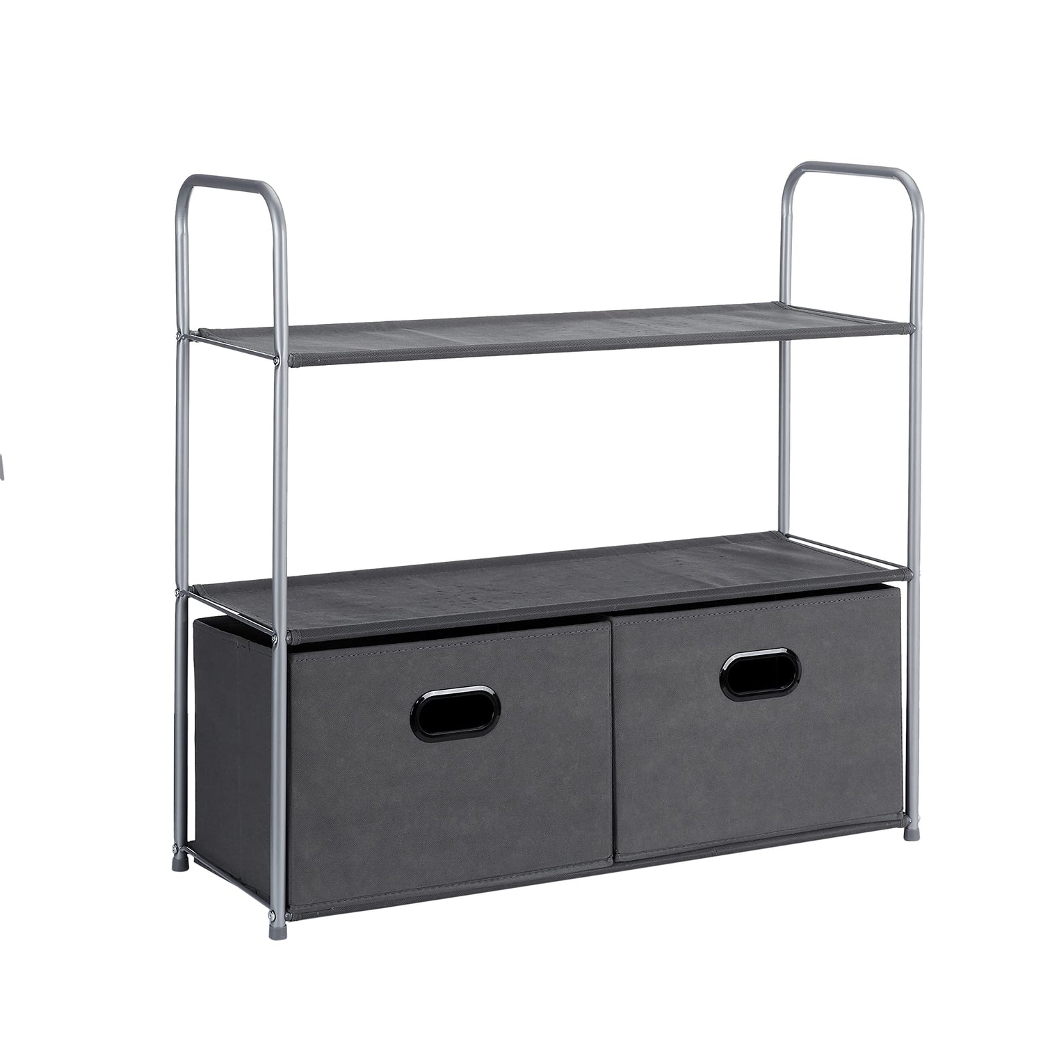 Amazon Basics Schrank-Organisationssystem mit DREI Regalböden aus Stoff und Zwei Zusammenschiebbaren Oben Offenen Behältern, 32.7" x 12.2" x 31", Grau