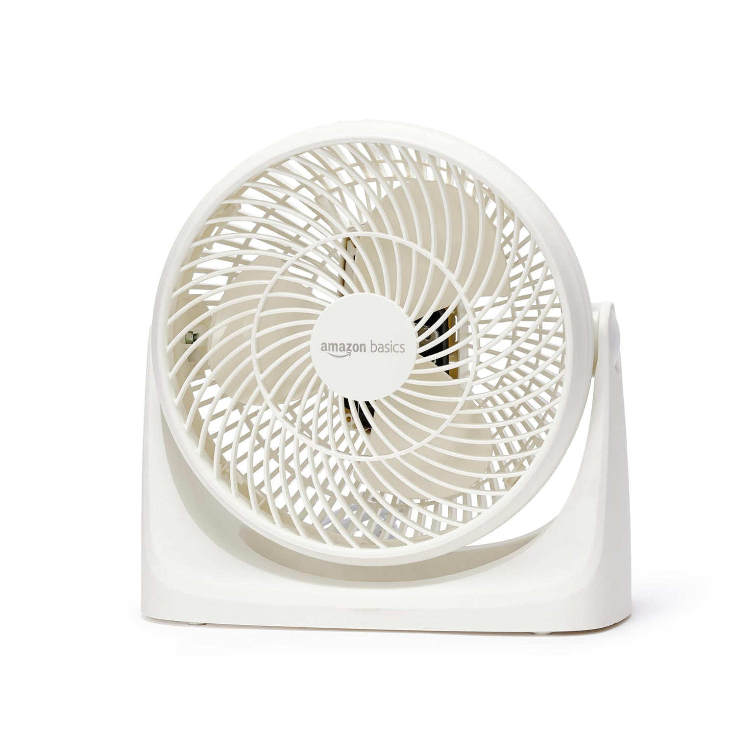 Amazon Basics Tisch-Ventilator tragbar, 18 cm, geräuscharme Kühlung, 3 Geschwindigkeiten, um 90° verstellbarer Winkel, Weiß, 15,49 x 27,3 x 27,69 cm