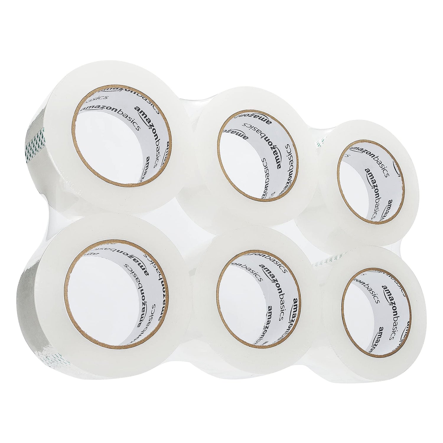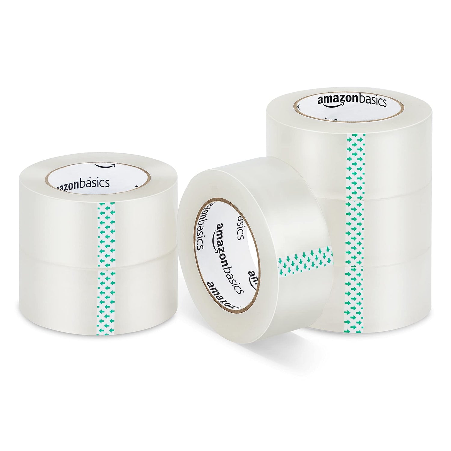 Amazon Basics Transport- und Packband, 4,77 cm Breite x 99,6 m, Transparent, 6 Stück, Durchsichtig,Weiß