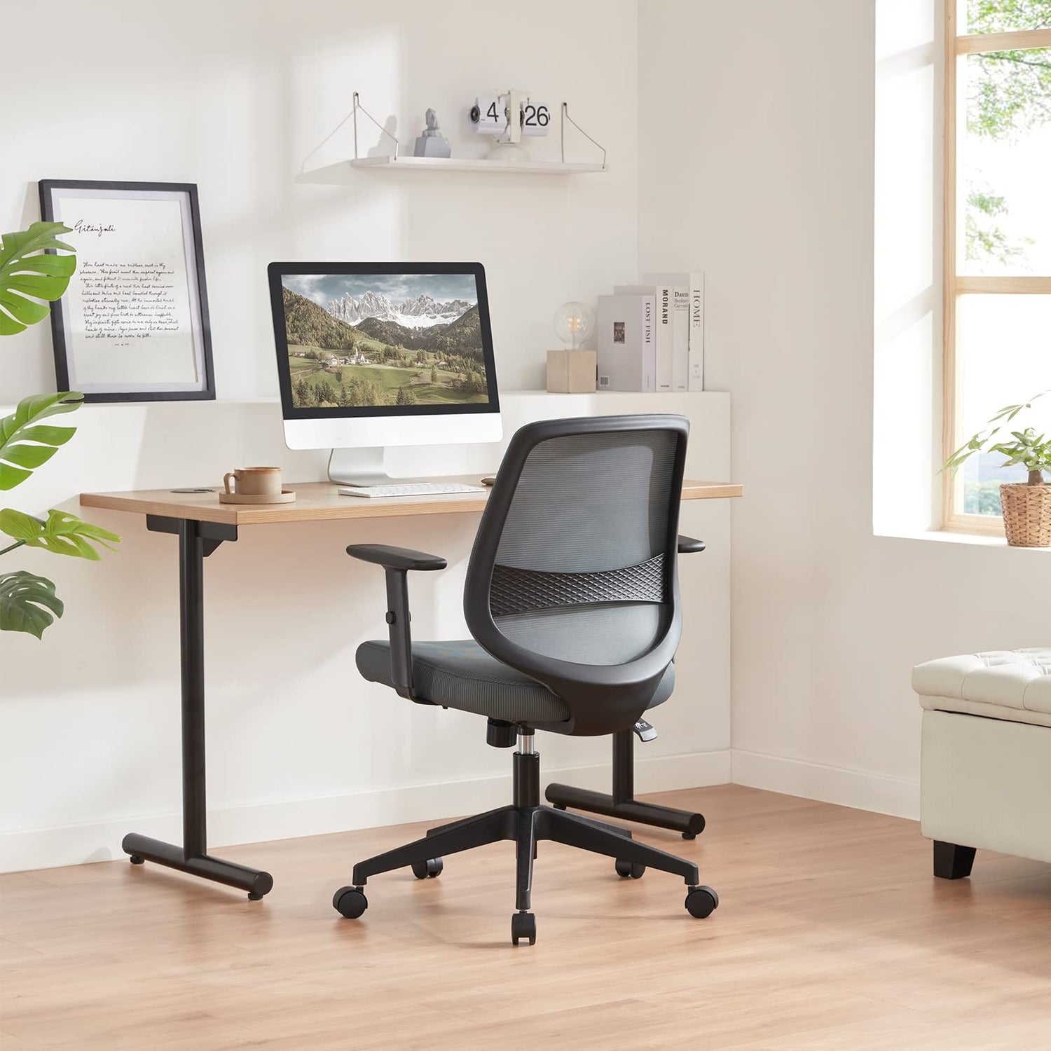 Amazon Basics verstellbarer Schreibtischstuhl mit halbhoher Rückenlehne aus Netzmaterial, Armlehnen und Lendenwirbelstütze, 63,5 x 58 x 91 cm, Grau (Früher Movian)